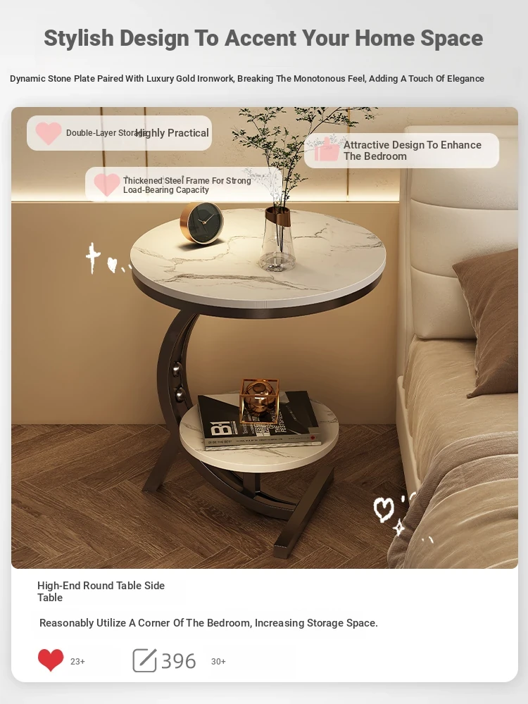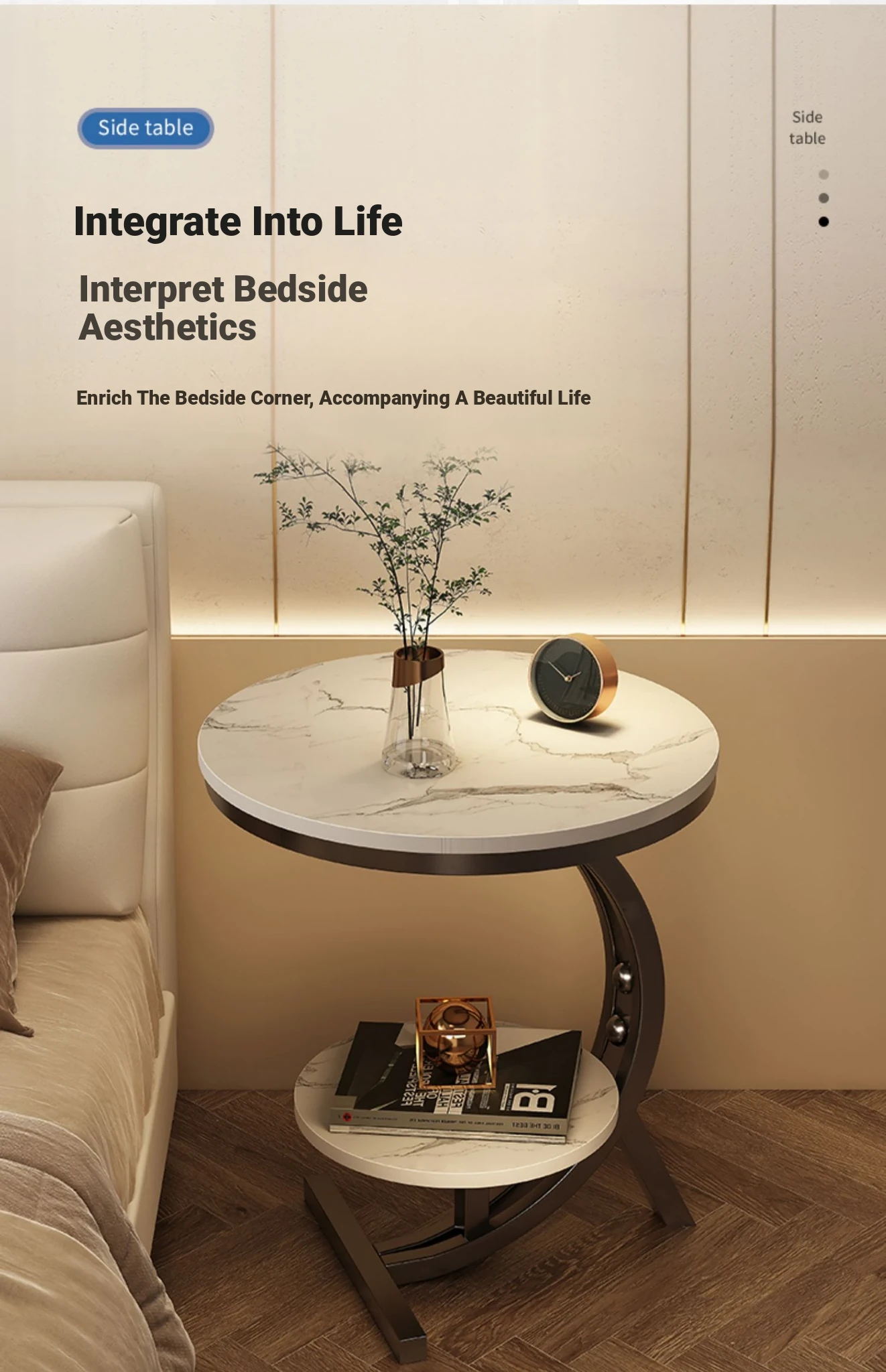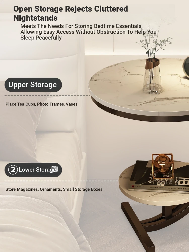 Modern Minimalist Nightstand with Round Table Design - Creative Side Table and Elegant Bedside Storage Solution for a Luxurious Touch