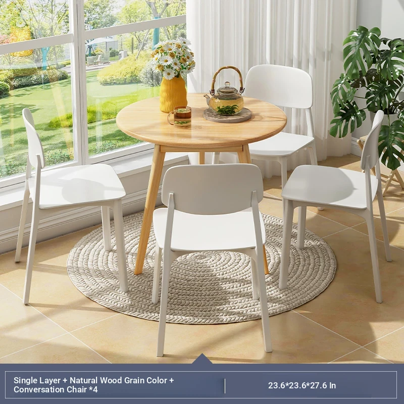 Natural Wood Color 60X70Cm Table + 4 Imported Chairs [Thickened Tabletop + Solid Wood Legs]