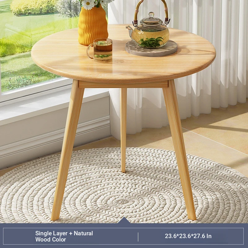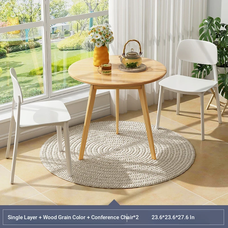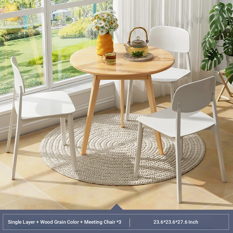 Natural Wood Color 60X70Cm Table + 3 Imported Chairs [Thickened Tabletop + Solid Wood Legs]