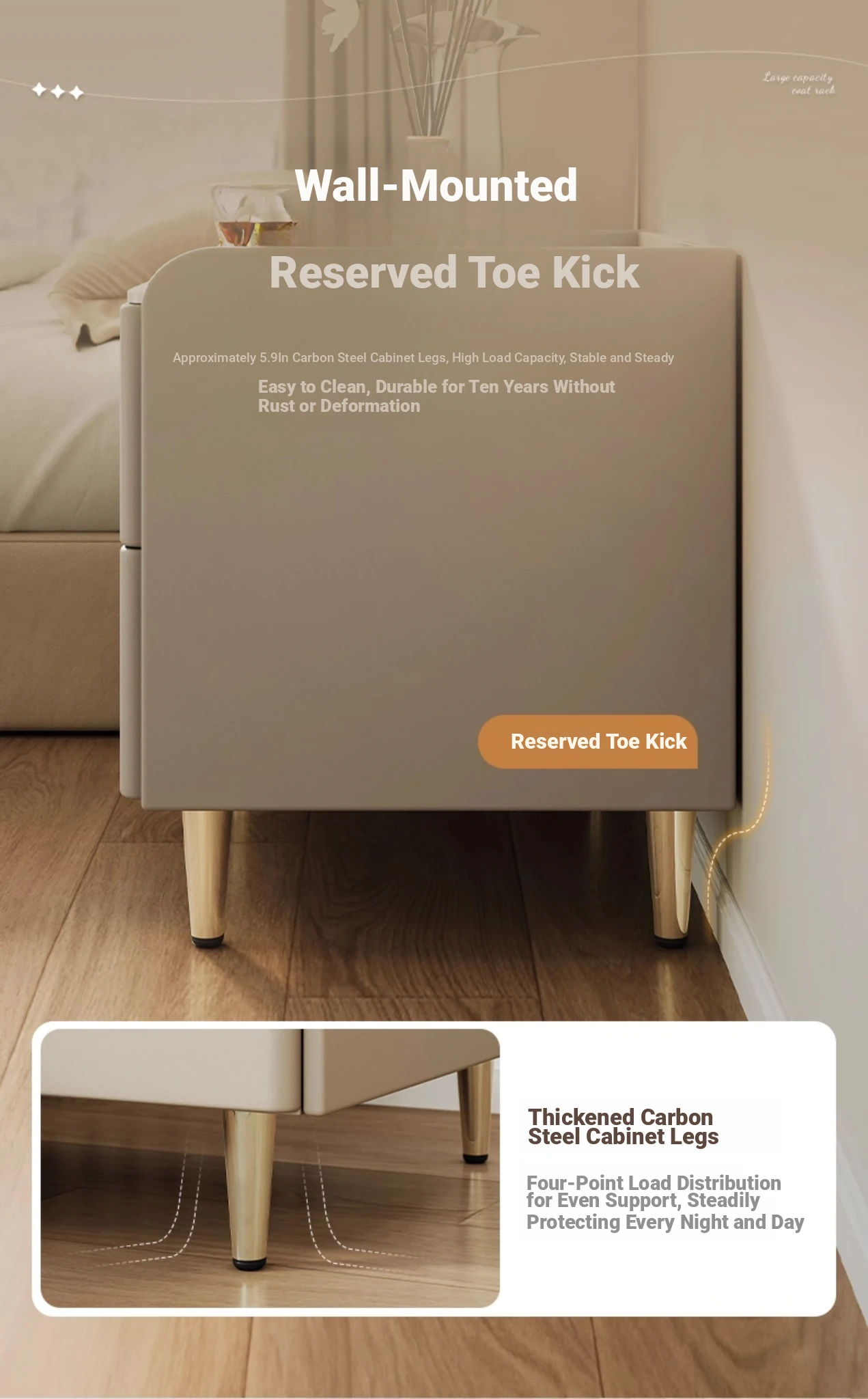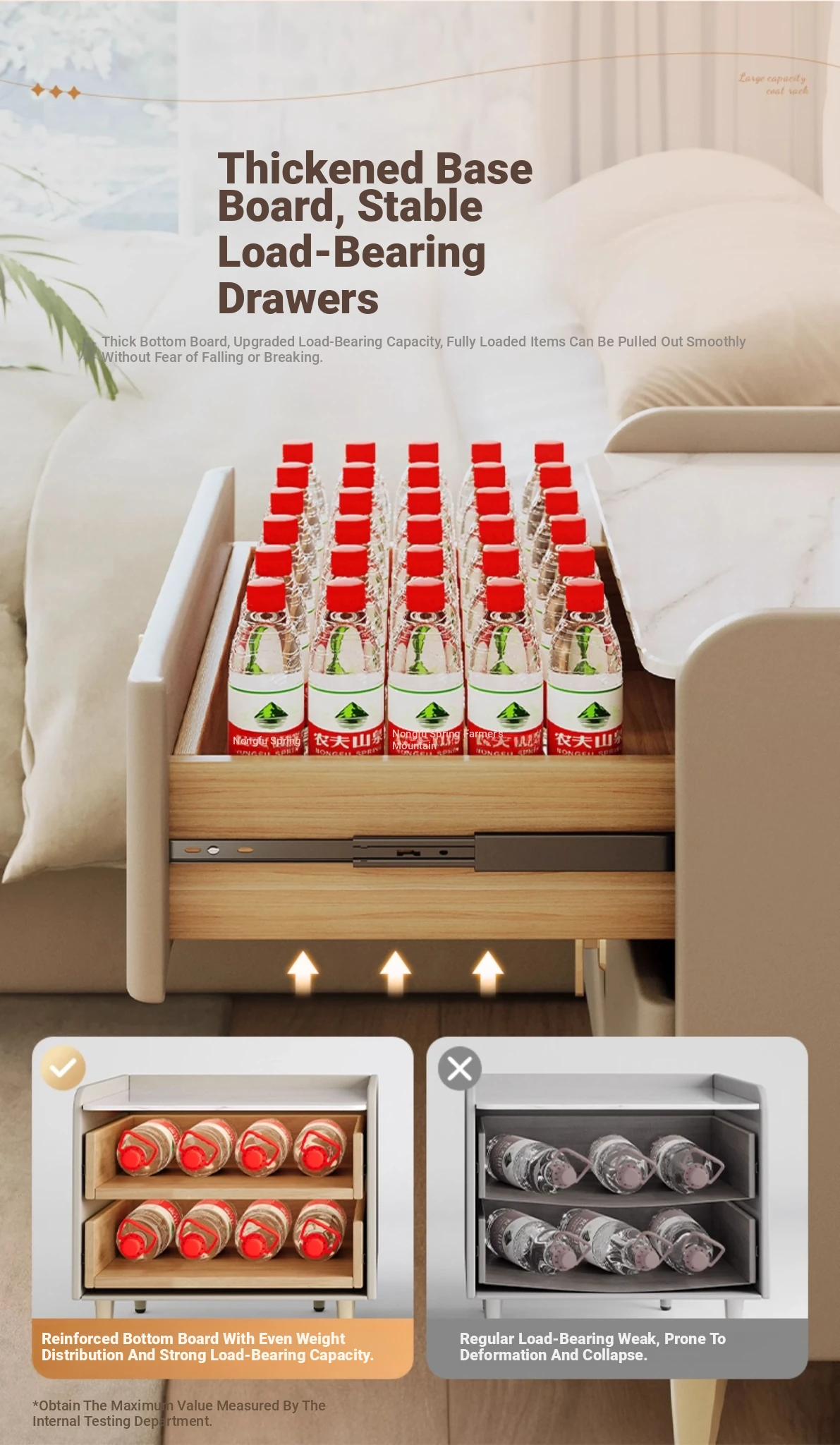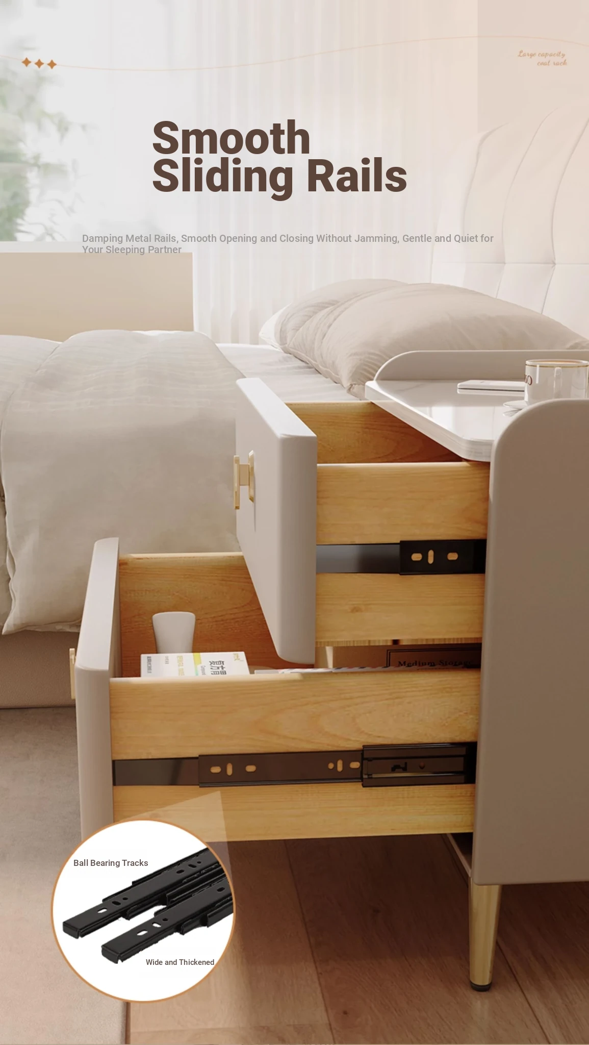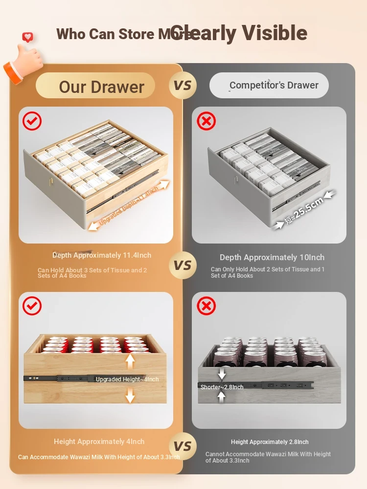 Thickened Multi-Layer Solid Wood Frame| Warm White + Black Legs| Solid Wood Drawers