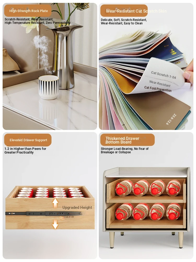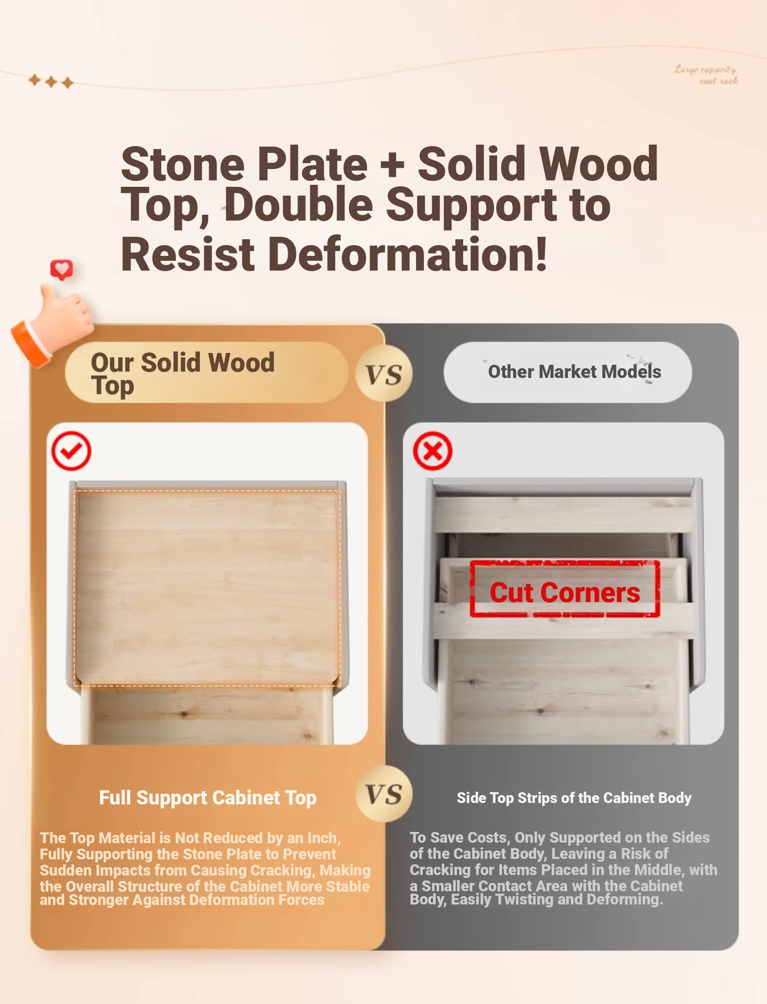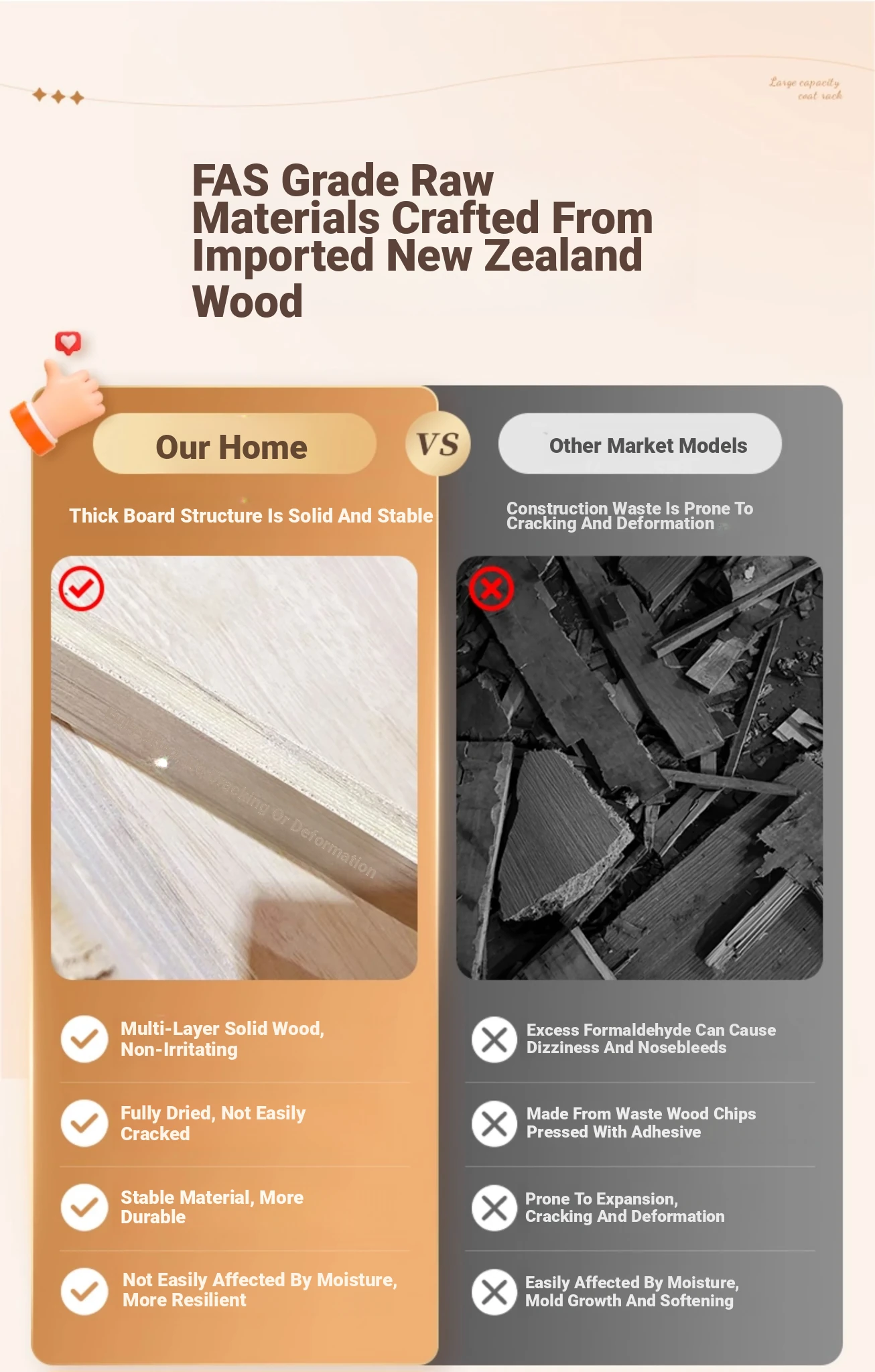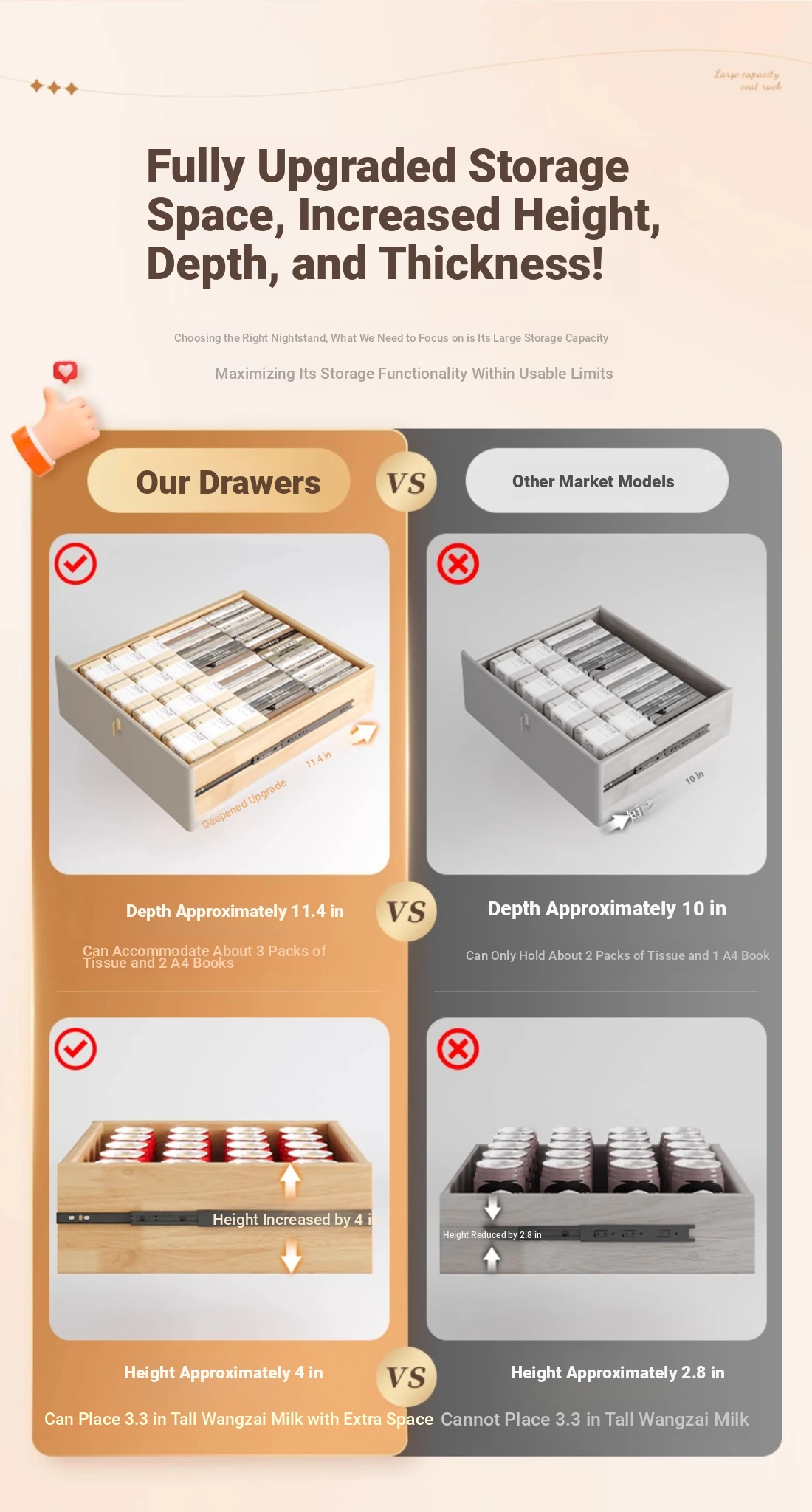 Thickened Multi-Layer Solid Wood Frame| Warm White + Black Legs| Solid Wood Drawers