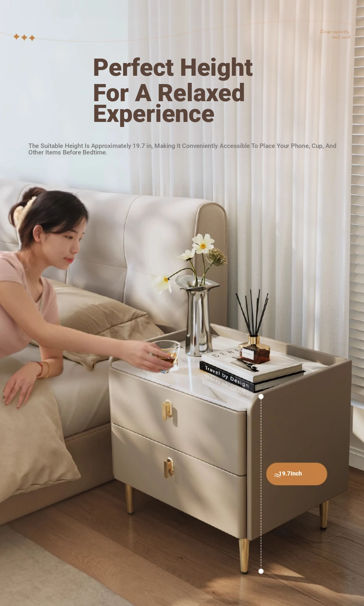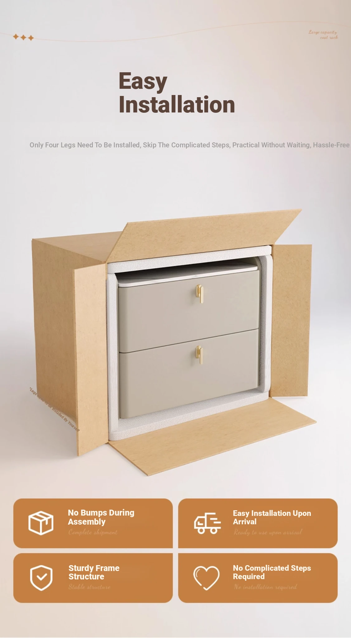 Thickened Multi-Layer Solid Wood Frame| High-Grade Gray + Gold Legs| Solid Wood Drawers