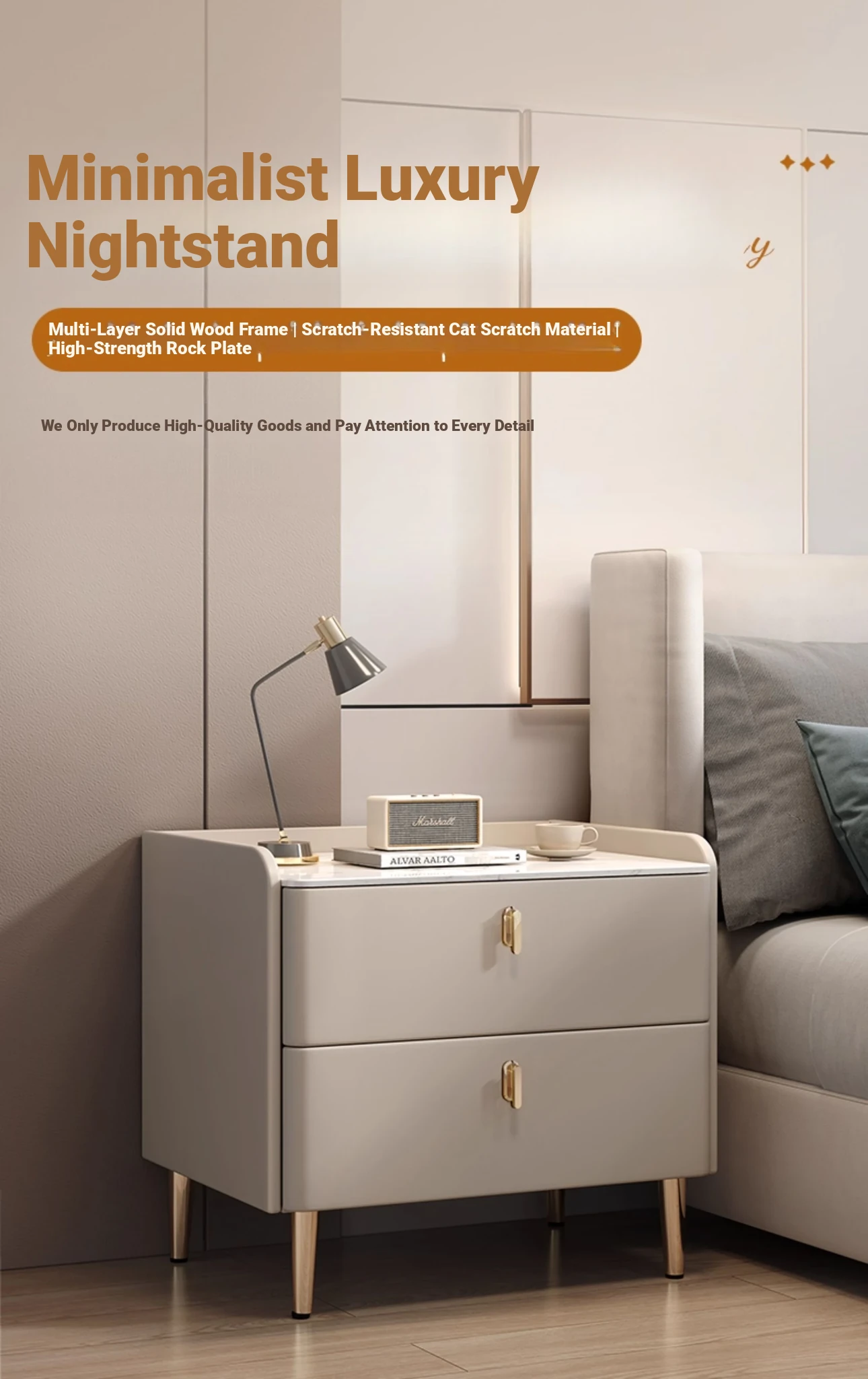 Modern Minimalist Solid Wood Nightstand - 2025 New Luxury Style Small Storage Cabinet for Home Bedroom, Elegant and Functional Furniture Piece