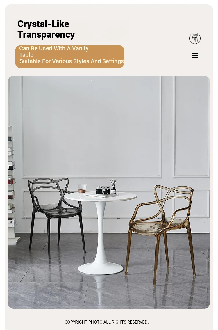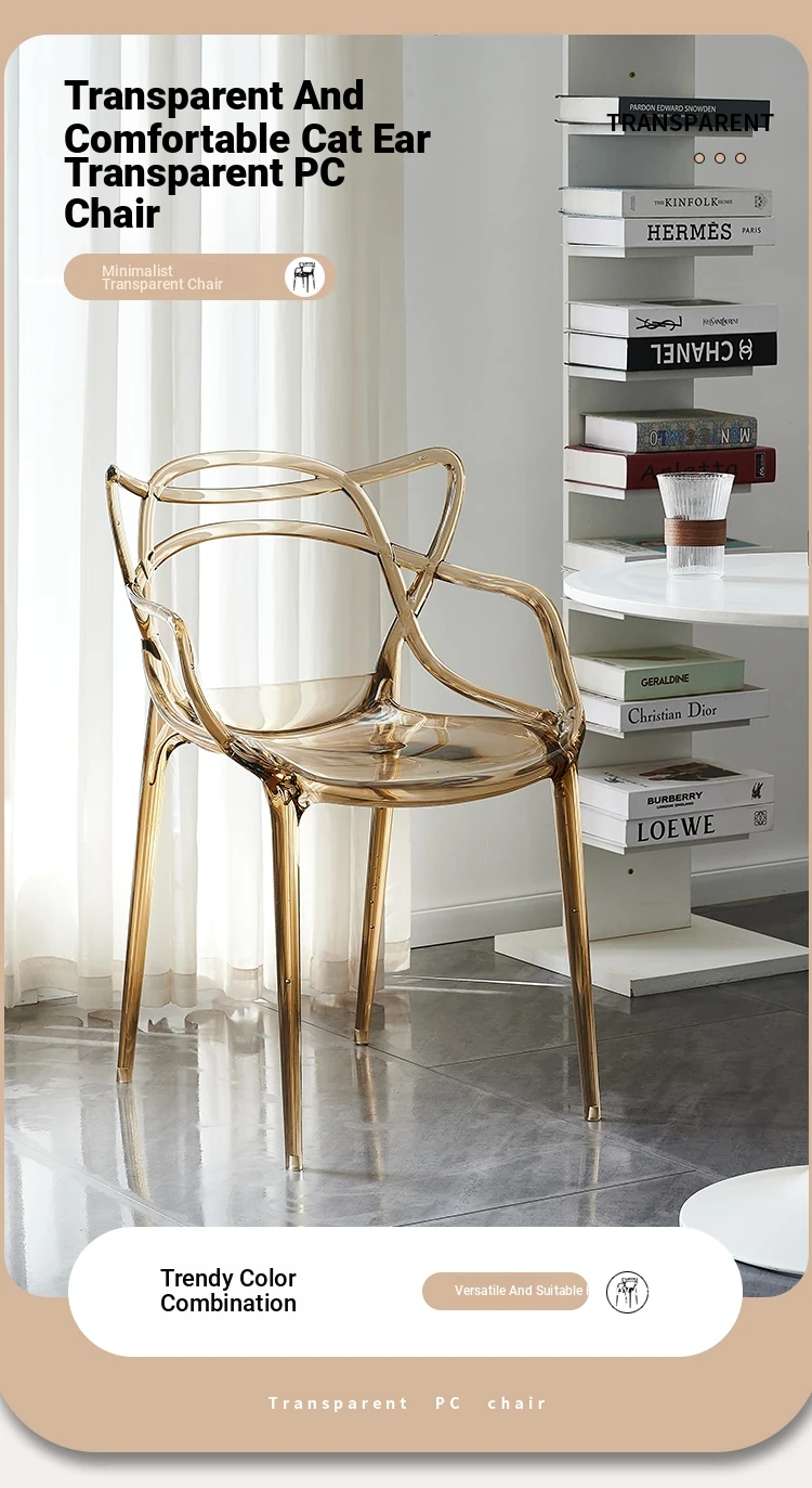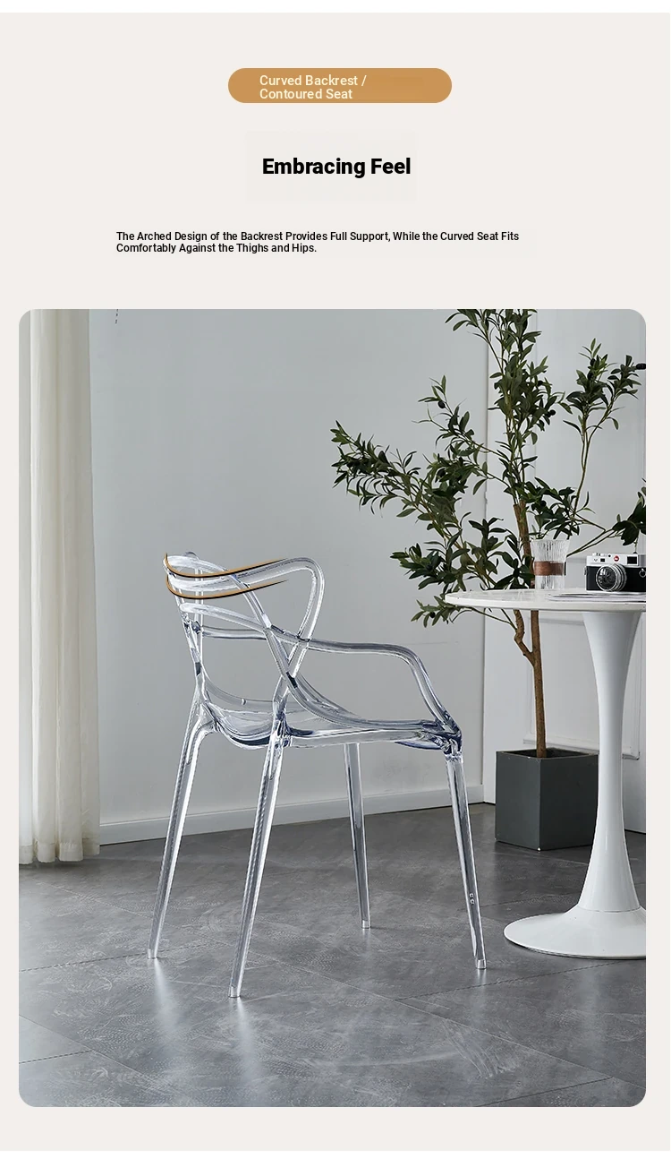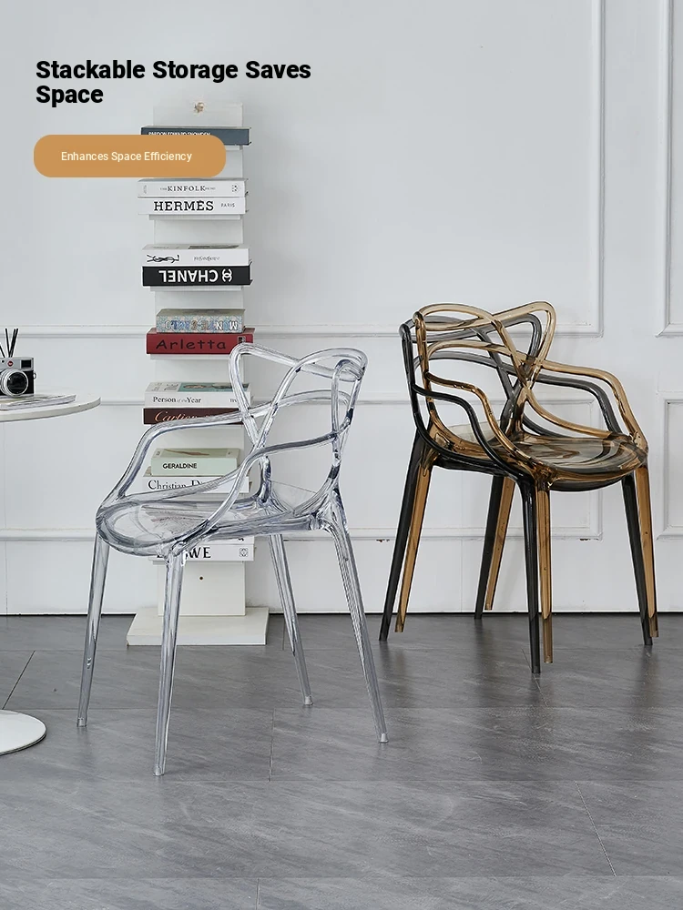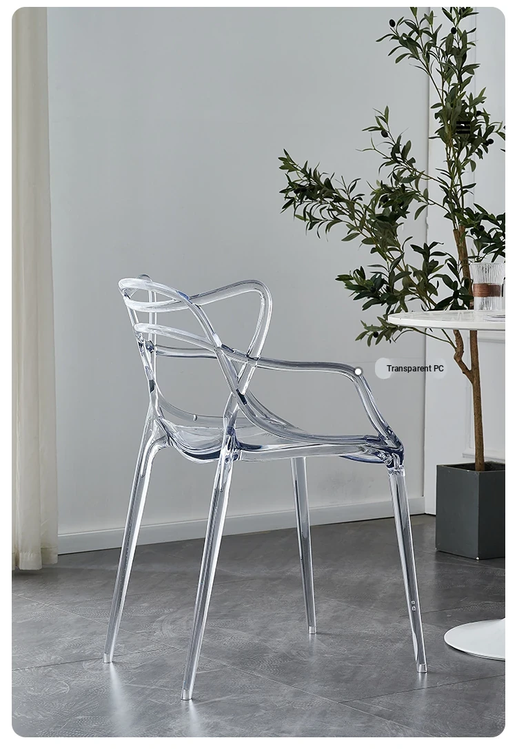 Modern Transparent Plastic Chair - Stylish Crystal Dining Chair for Home, Creative Makeup Chair, Chic High-Back Design for a Touch of Luxury