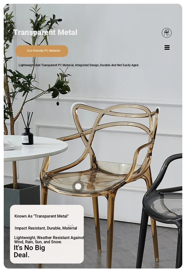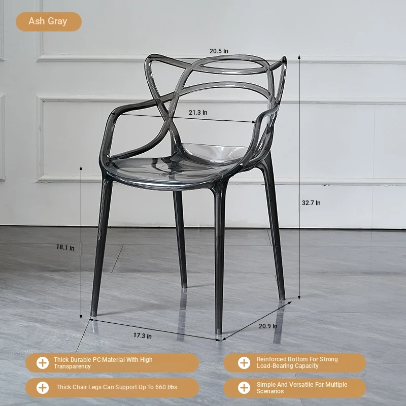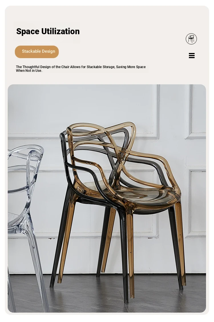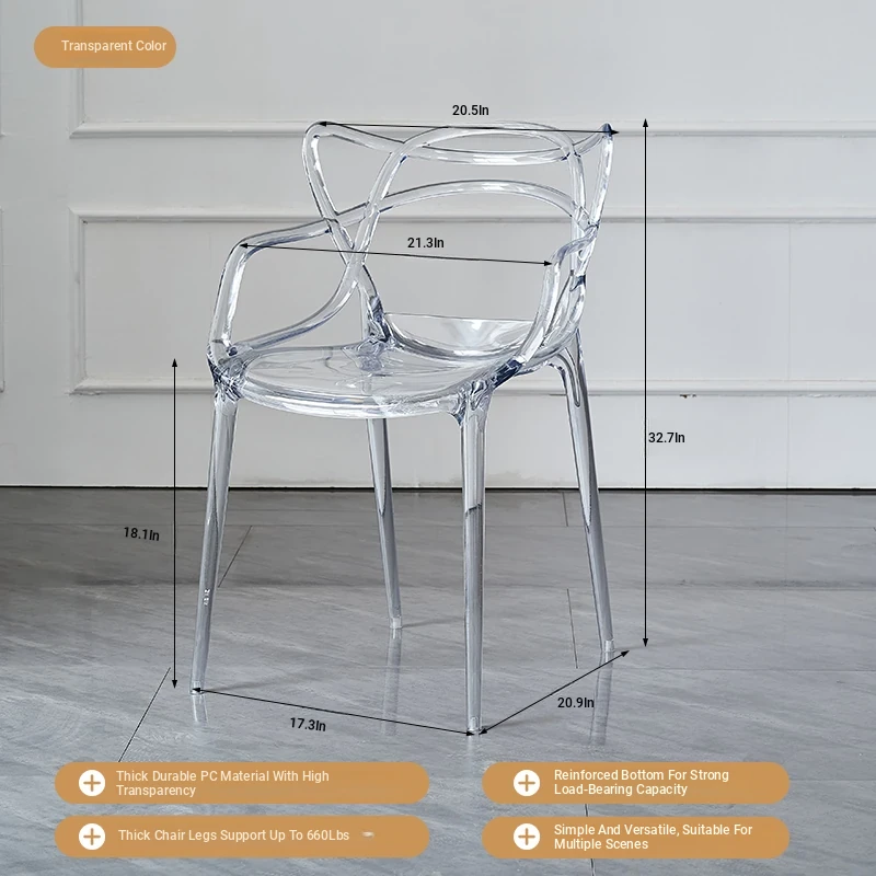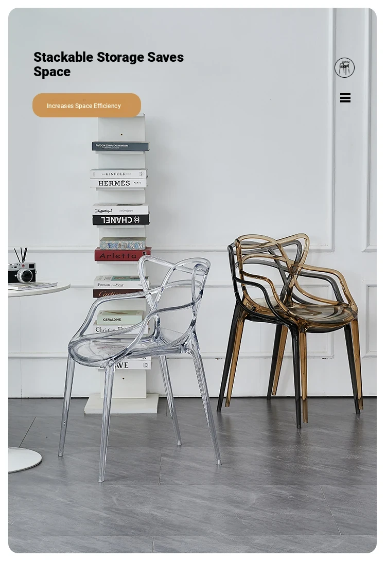 Modern Transparent Plastic Chair - Stylish Crystal Dining Chair for Home, Creative Makeup Chair, Chic High-Back Design for a Touch of Luxury