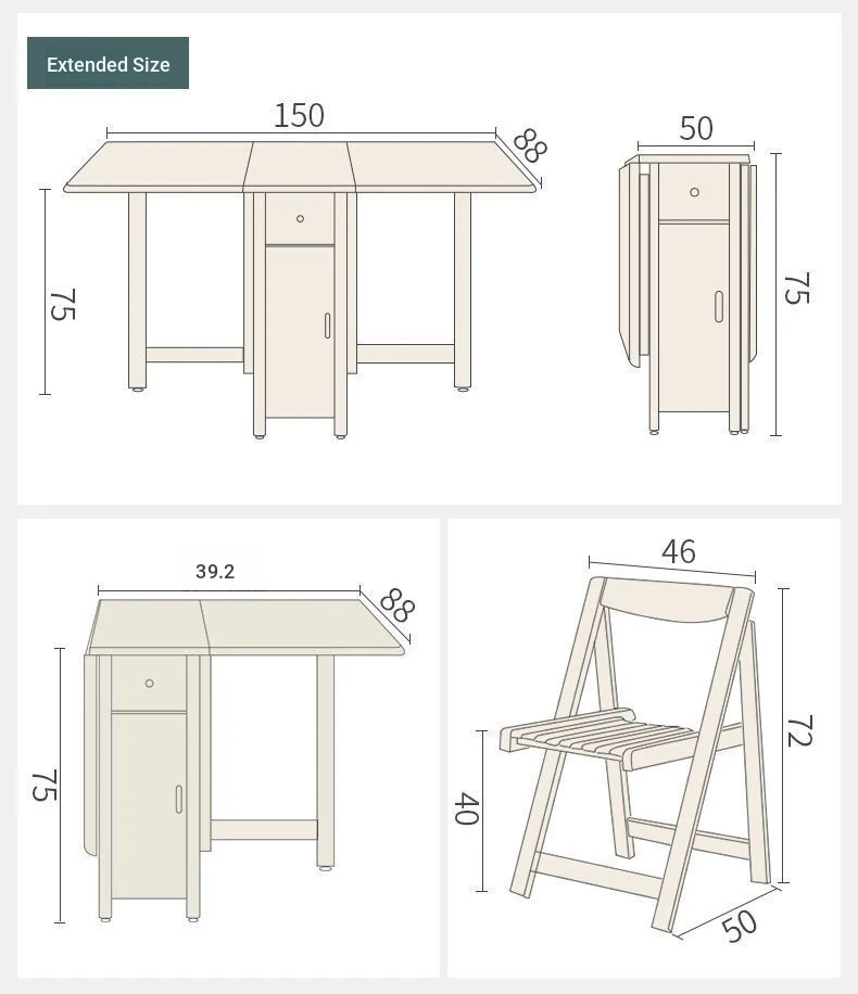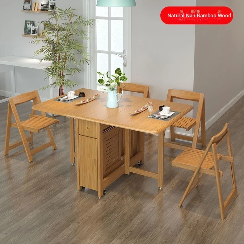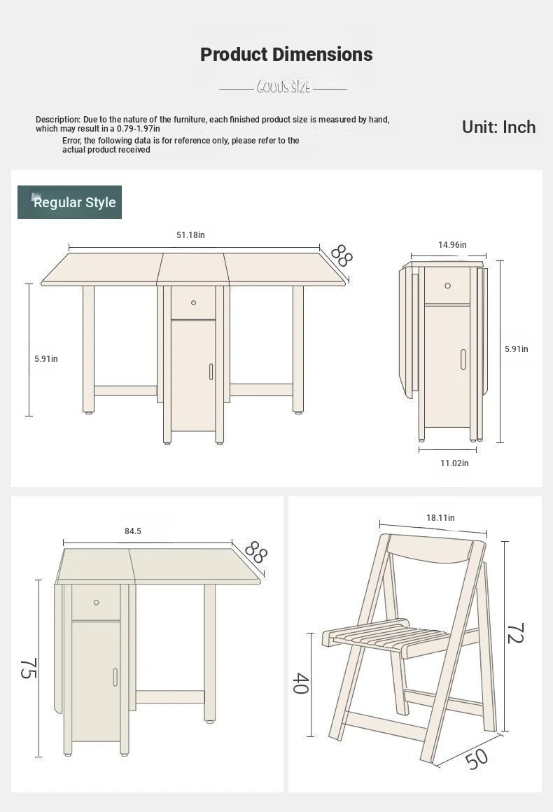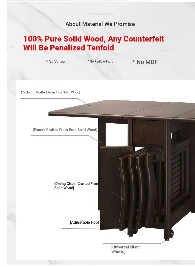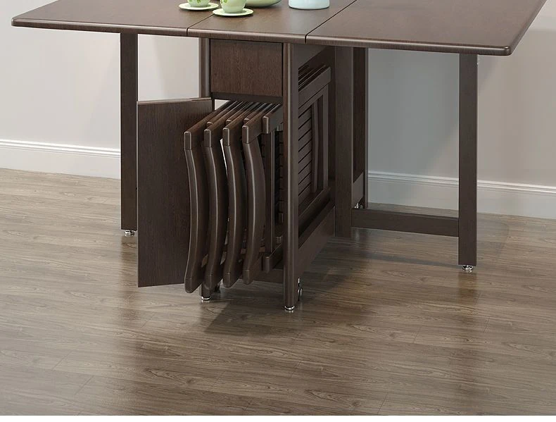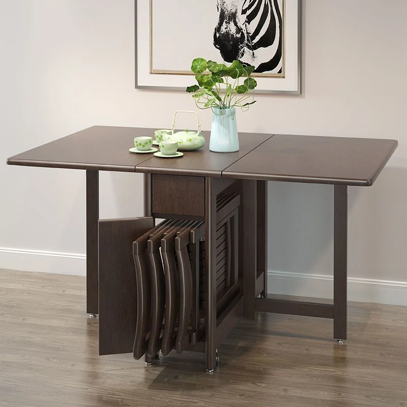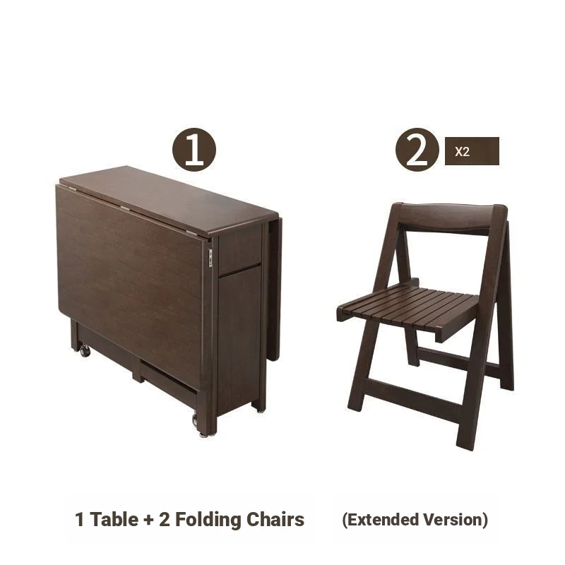 Modern Walnut Folding Dining Table Set - Space-Saving Solid Wood Rectangular Table and Chairs for Small Homes, Perfect for Dining and Entertaining