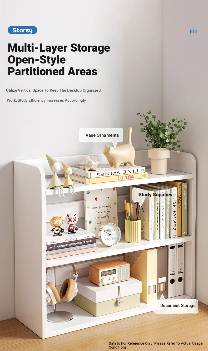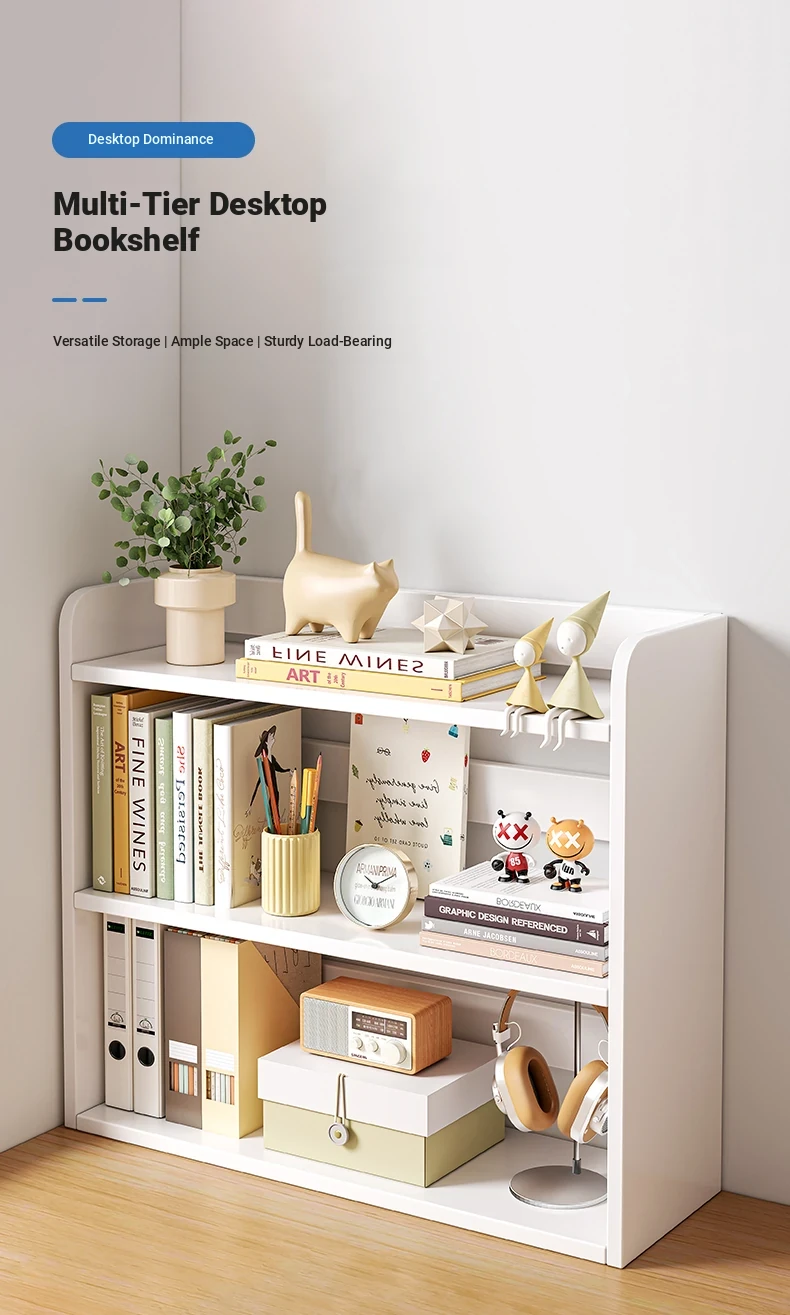 Multifunctional Desktop Organizer Shelf - 3-Tier Bookshelf for Students and Office Use, Ideal for Desk Storage and Organization, Perfect for Home and Workspaces