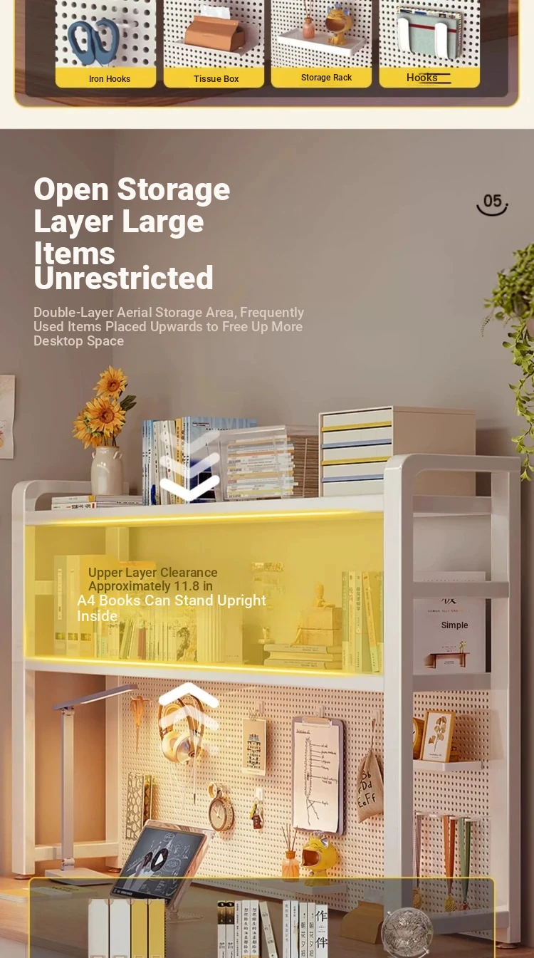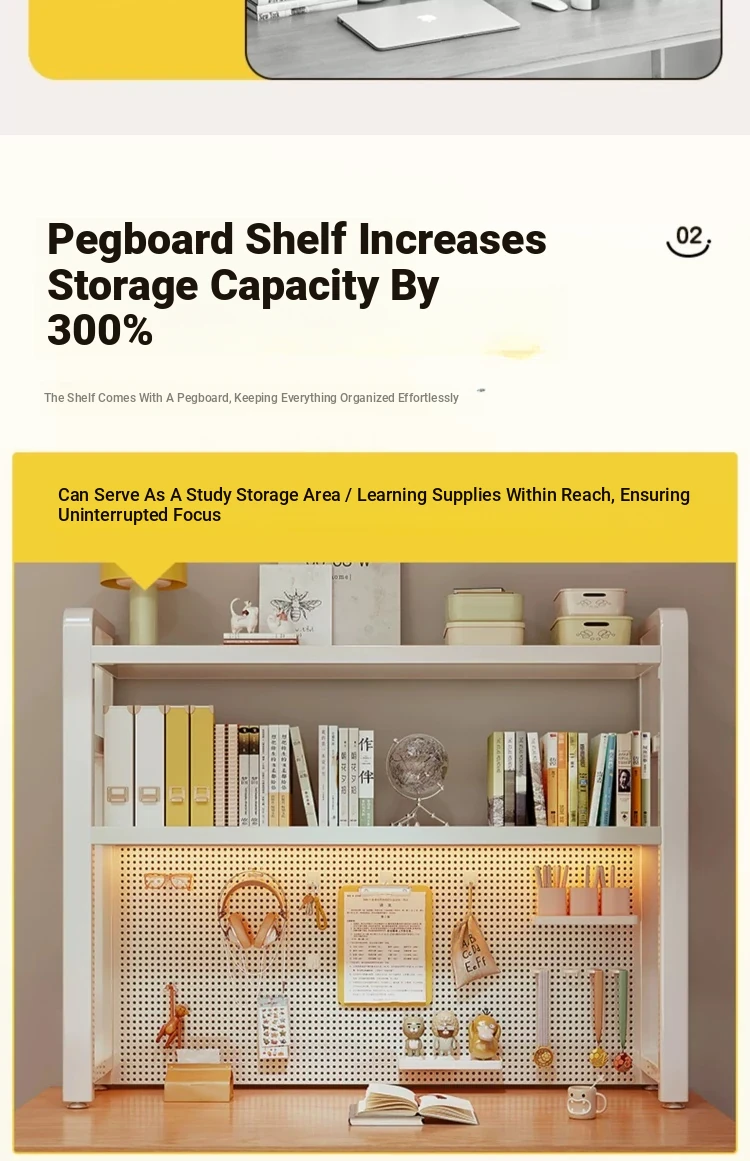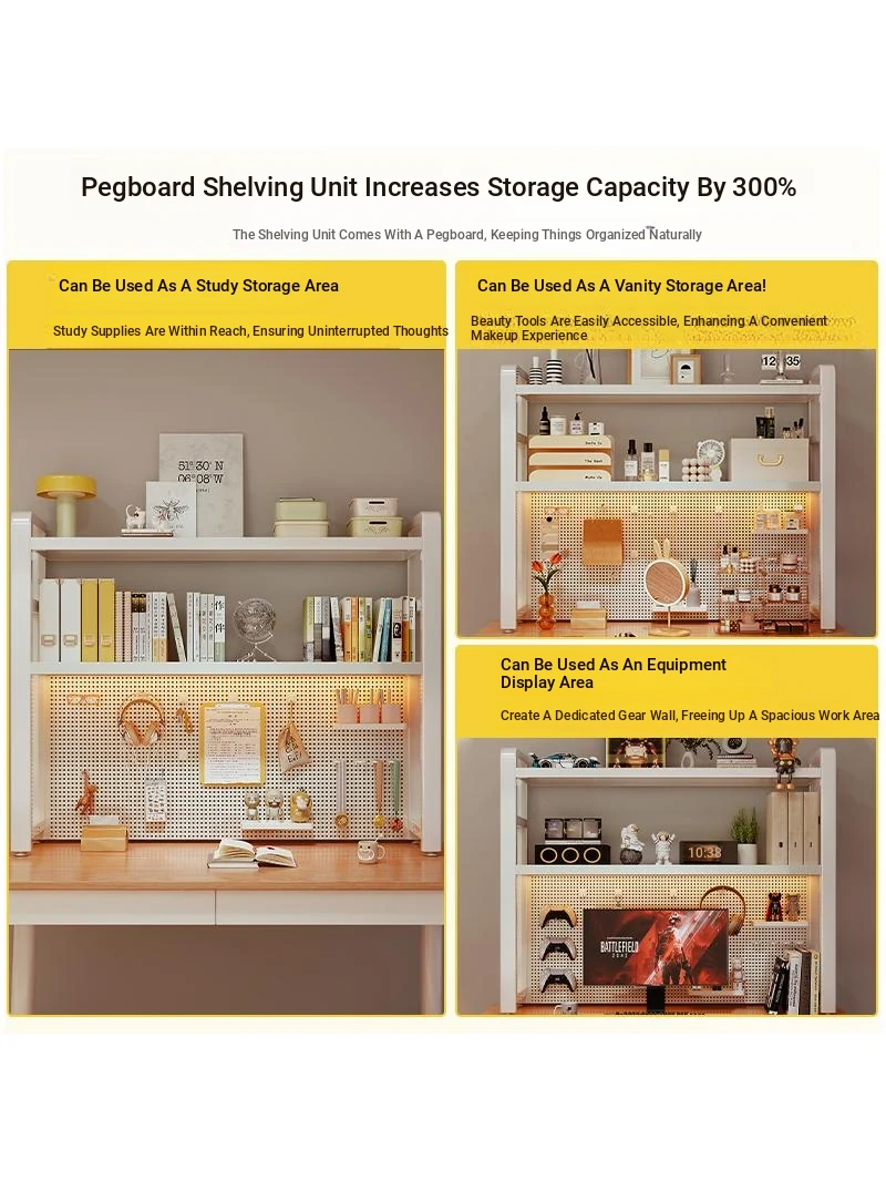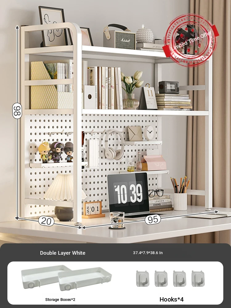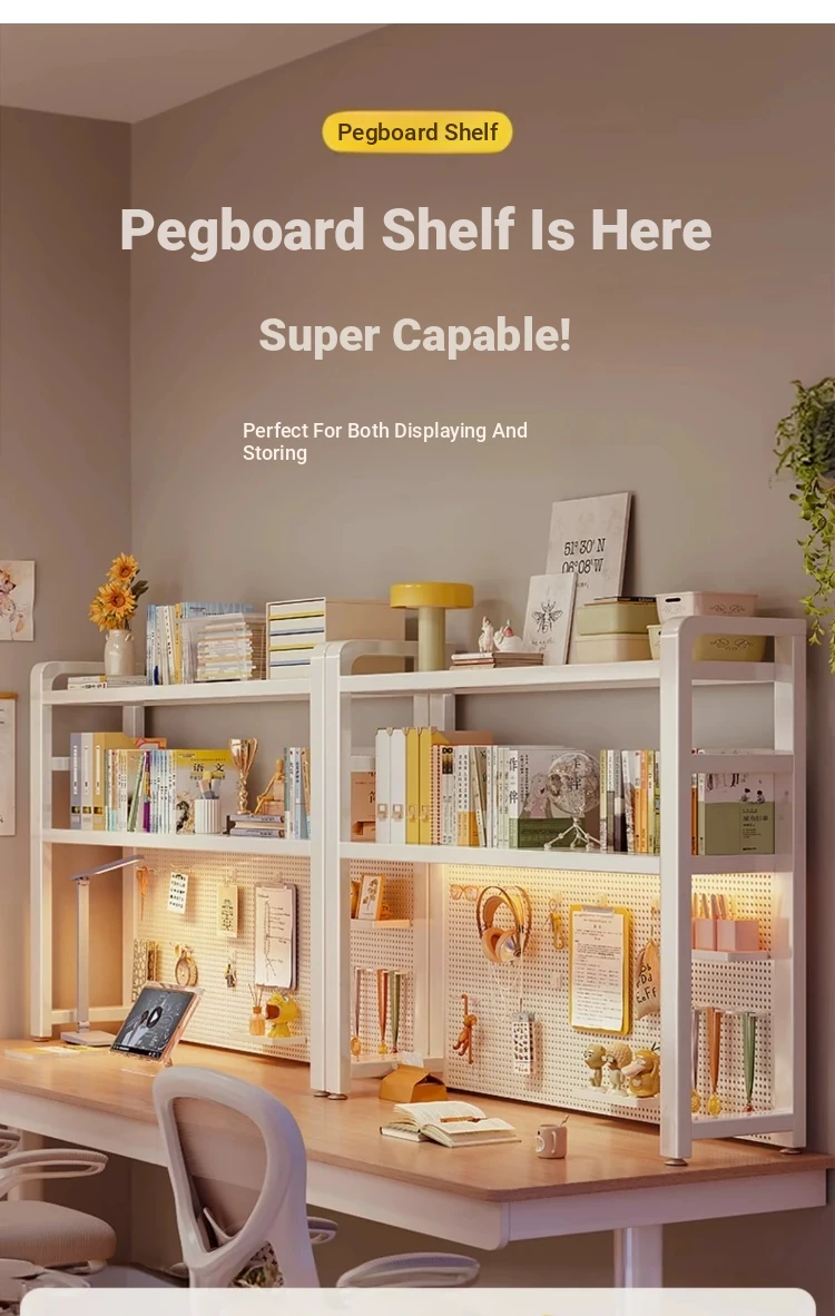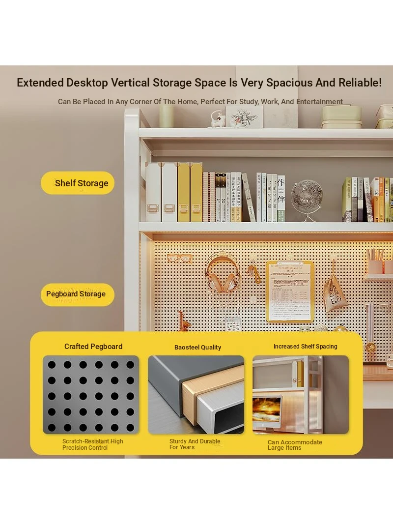 Multifunctional Desktop Pegboard Storage Rack - Vertical Multi-Tier Bookshelf Organizer for Writing Desk, Perfect for Home Office and Computer Desk Makeover