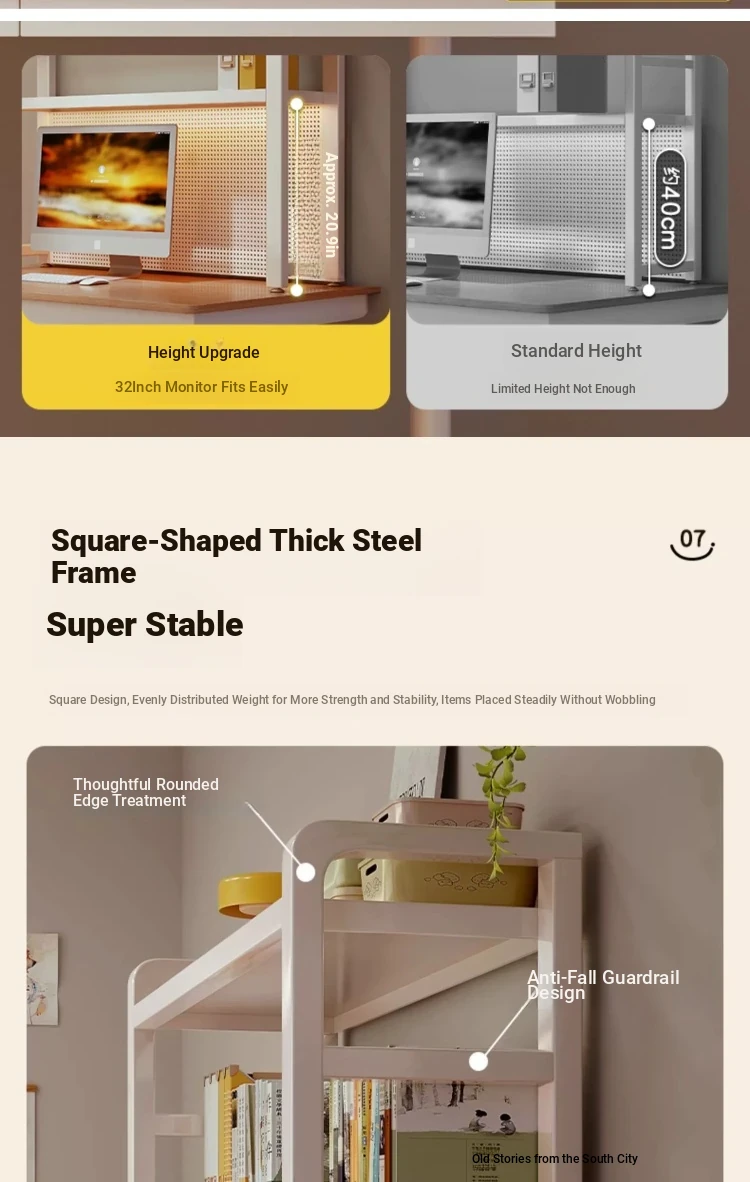 [Thick Steel Frame, Stable Load-Bearing] Double Layer-95Cm-White
