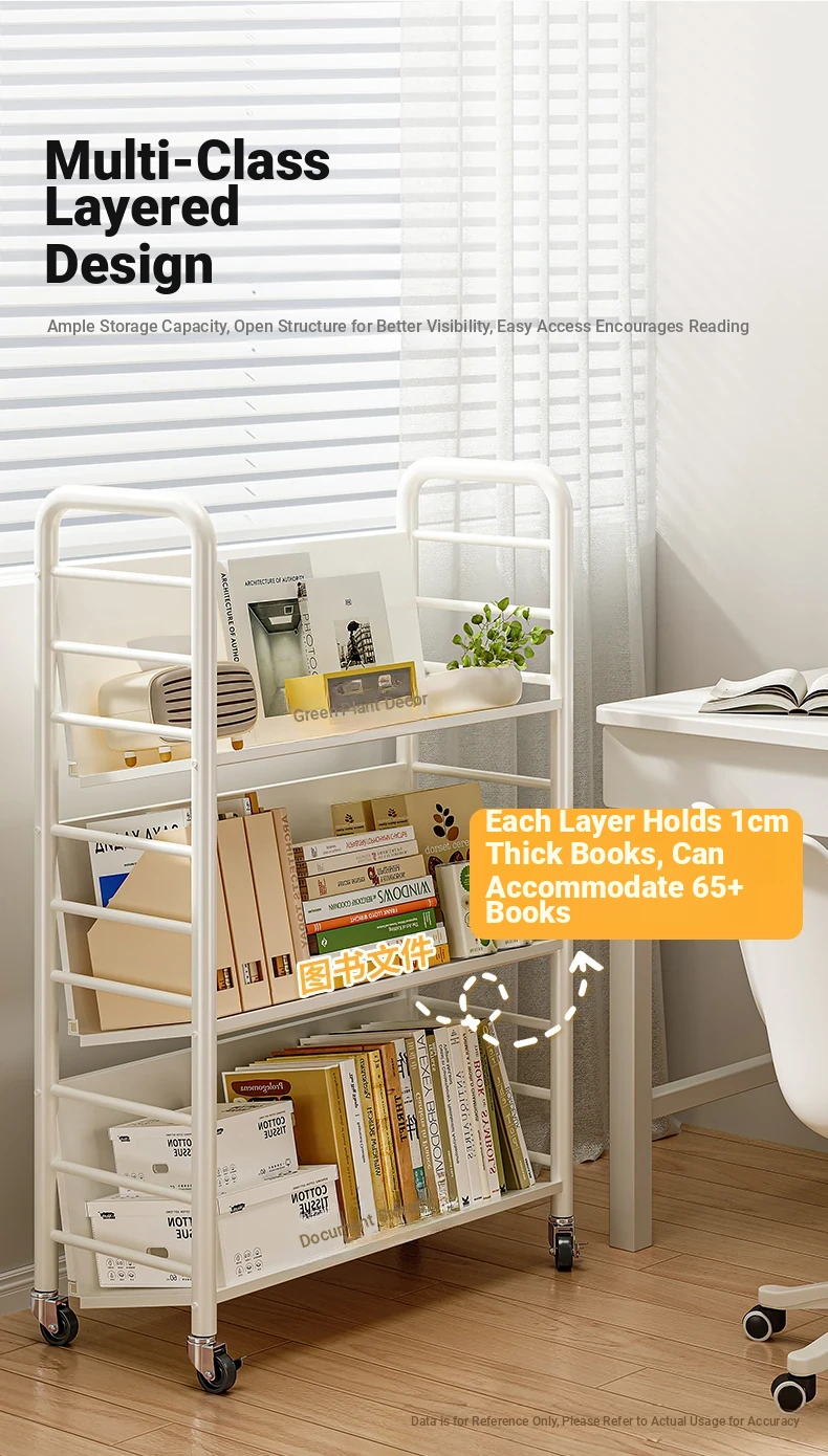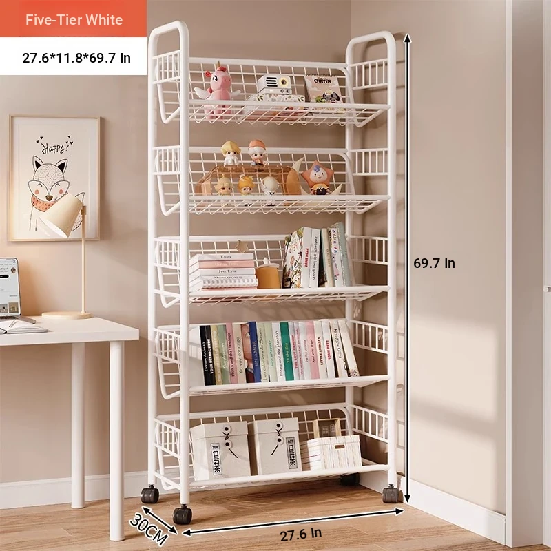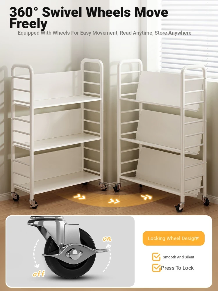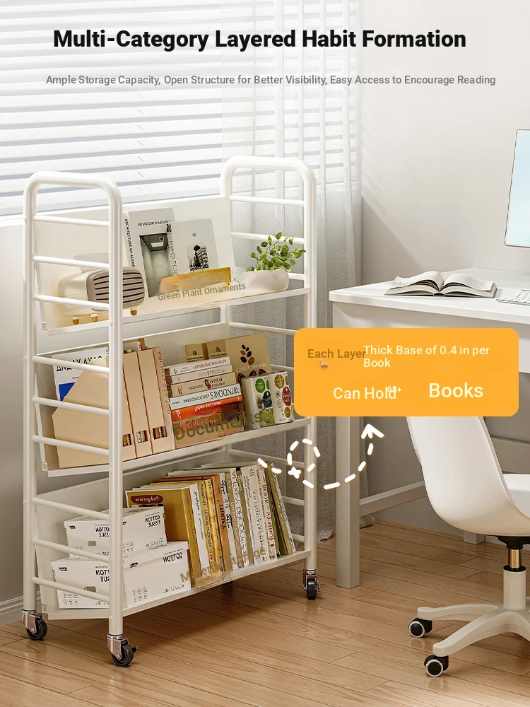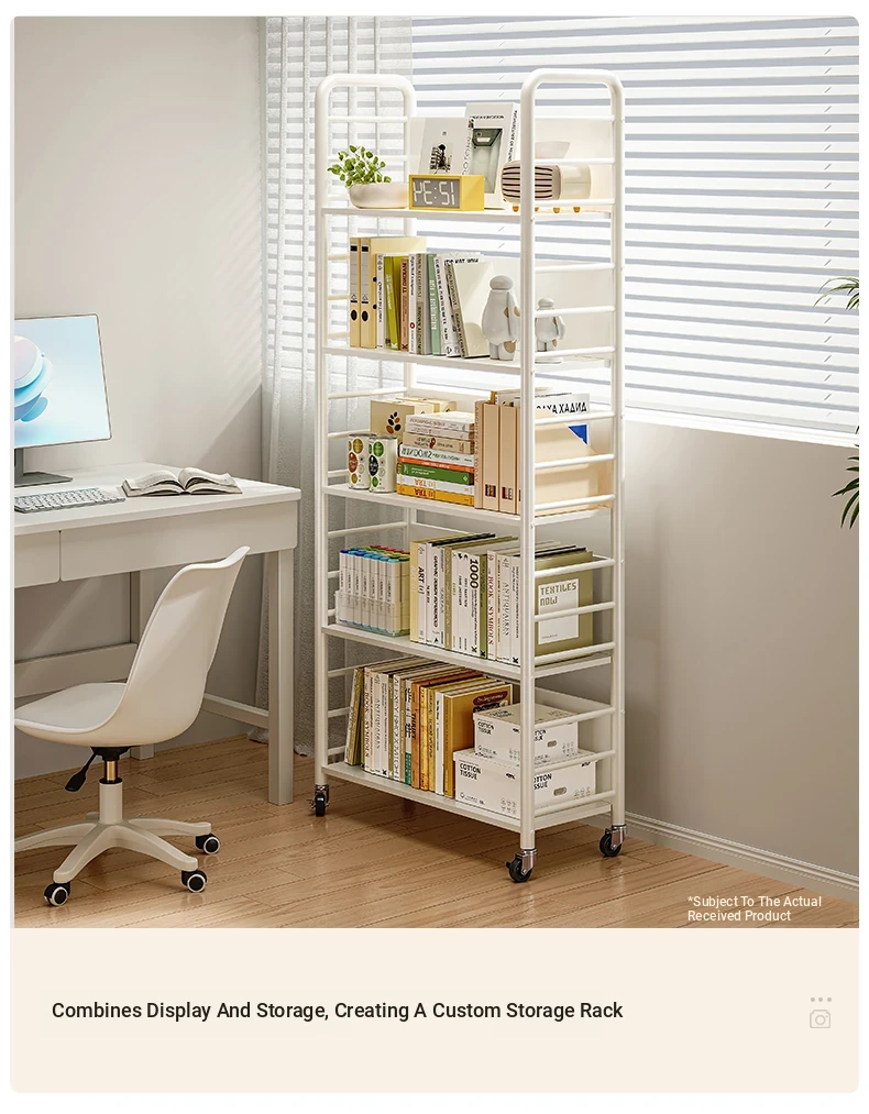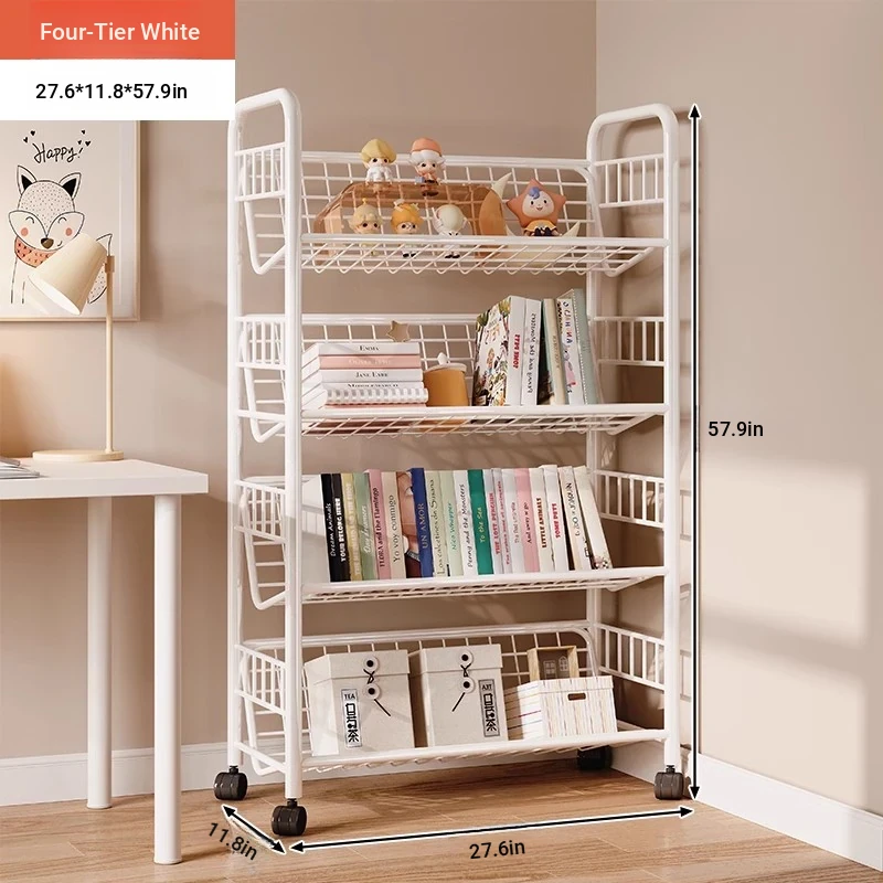 Multifunctional Rolling Bookshelf - Portable Storage Cart for Kids' Toys, Easy to Move, Ideal for Desk Side Use, Simple Bookshelf with Wheels for Organizing and Decluttering Your Space