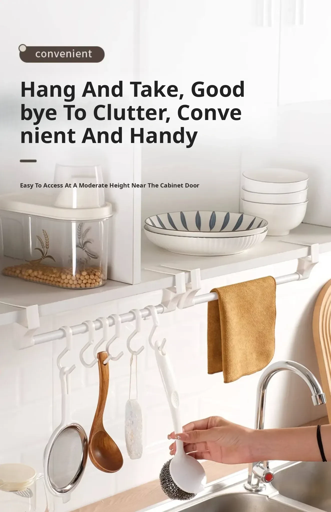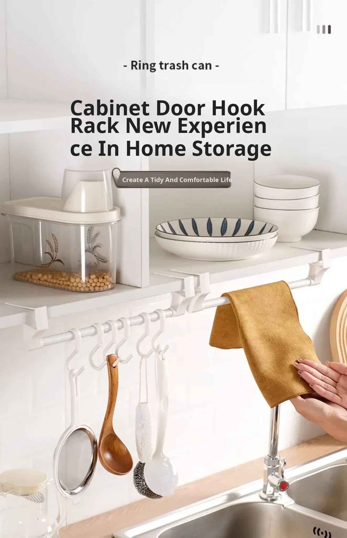 Cabinet Door Towel Rack (1 Piece) with Hook + Sausage Mouth