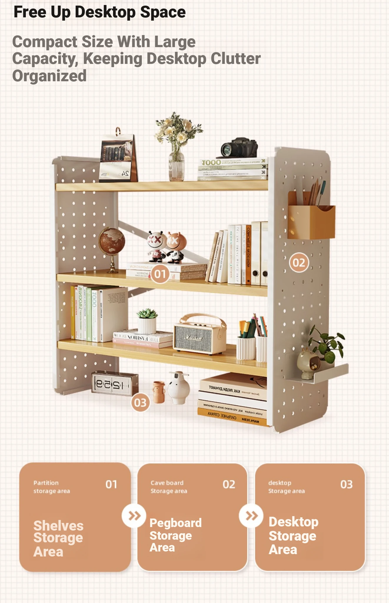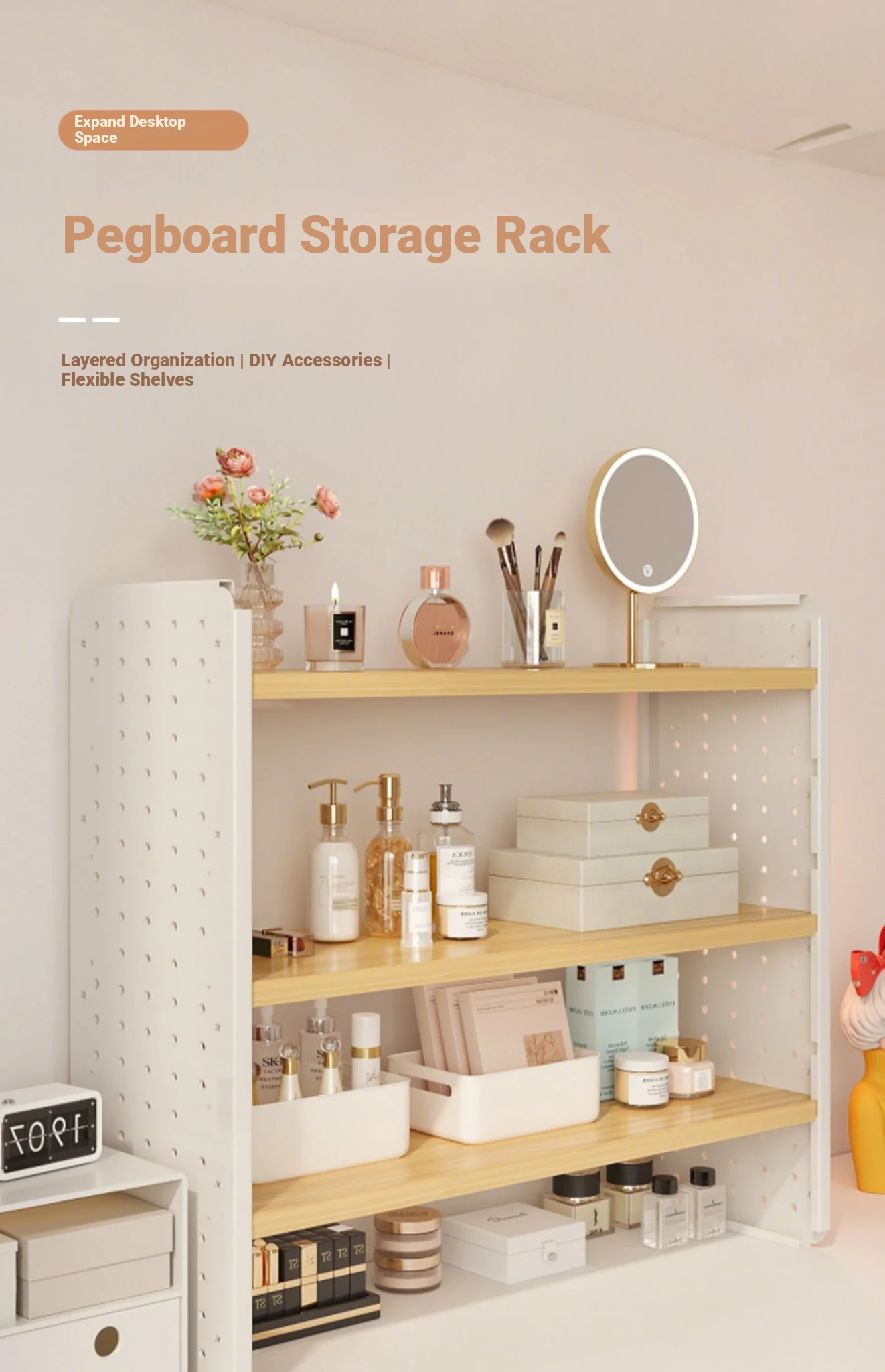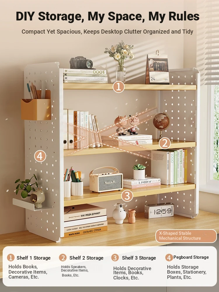 Multi-Layer Desktop Cosmetic Organizer - Stylish Pegboard Storage Rack for Home and Study Desks, Perfect for Displaying and Organizing Beauty Products and Supplies