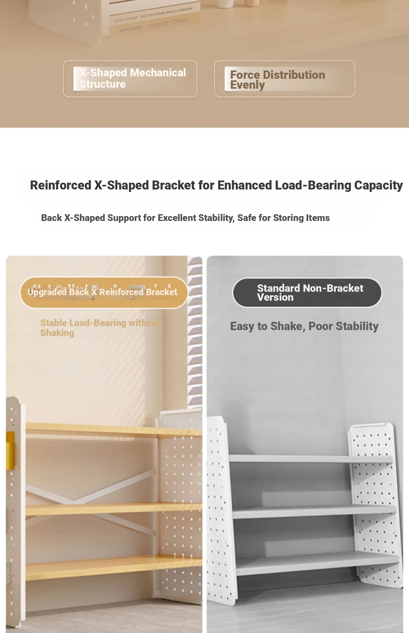 [Free Reinforced X Frame ★ Three Floors] ★ Log Color + White Frame 15.75in*5.91in*23.62in