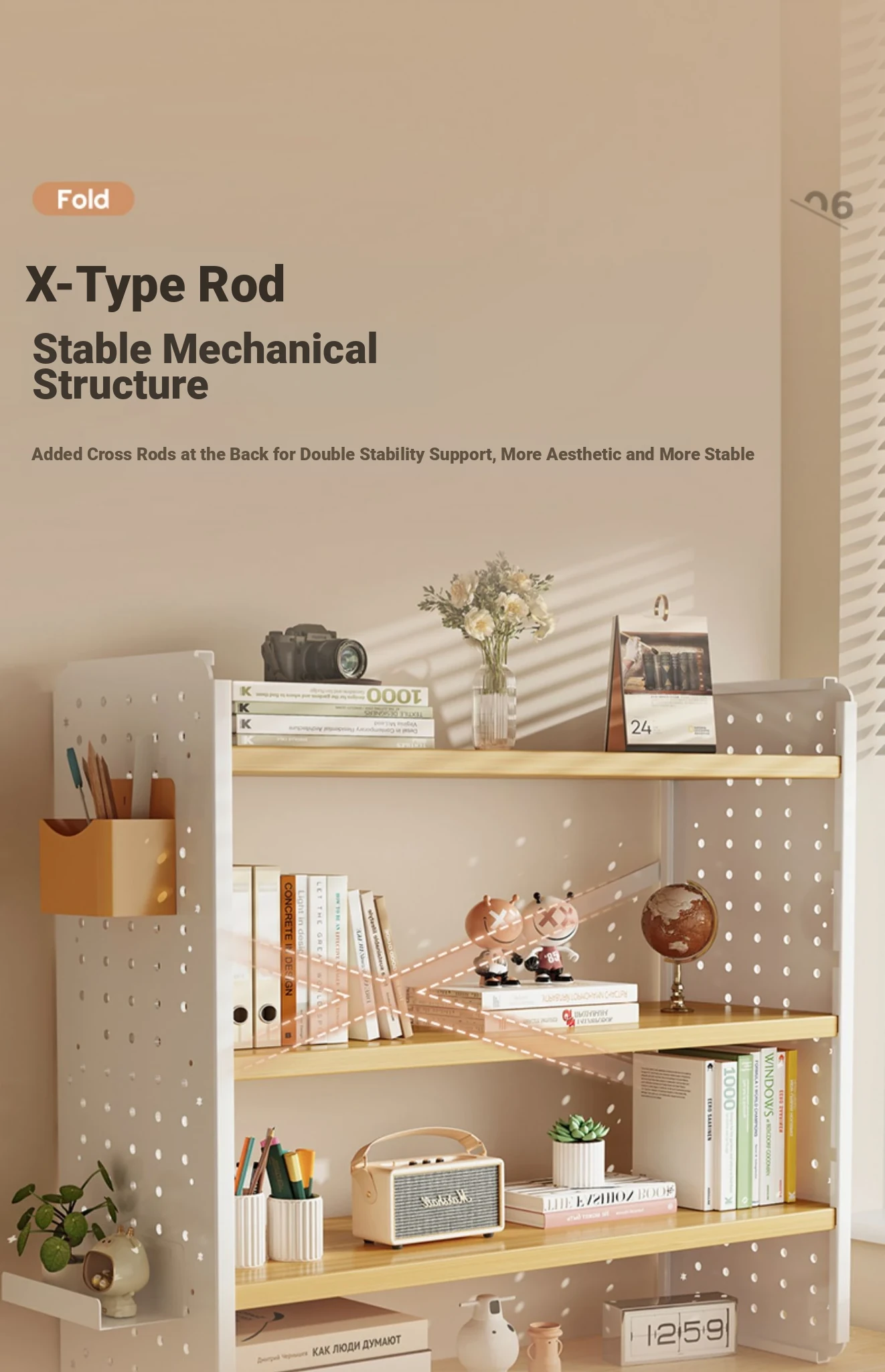 [Free Reinforced X Frame★Three Floors]★Warm White + White Frame 23.62in*5.91in*23.62in