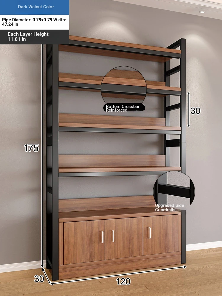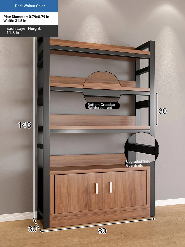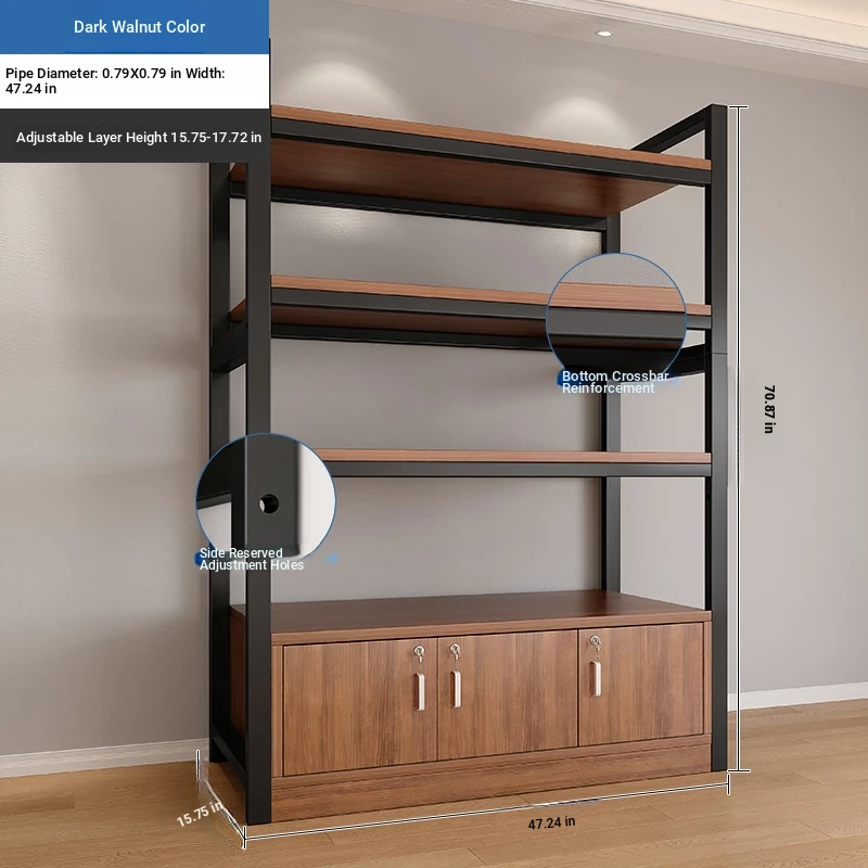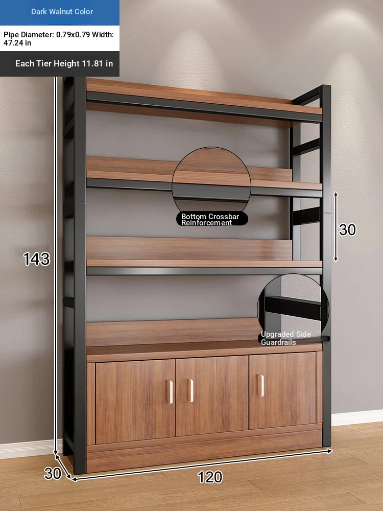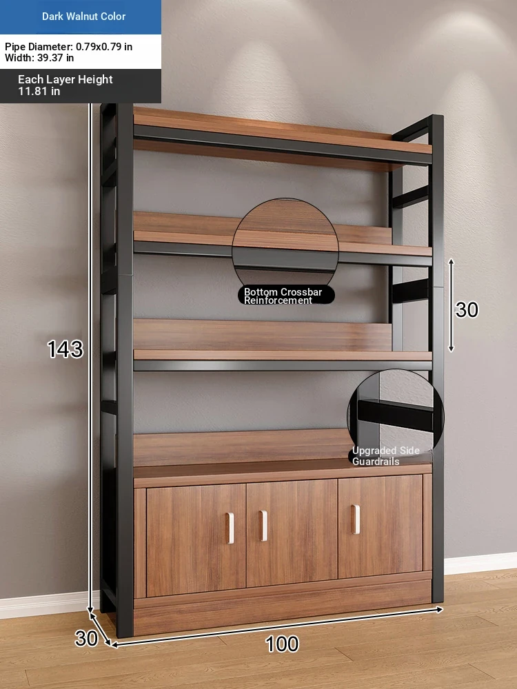 【35-40 Floor Height, Double Bottom Crossbar】Dark Walnut + Black Frame Four-Tier Shelf 47.24in([Upgraded Cabinet Door with Lock])