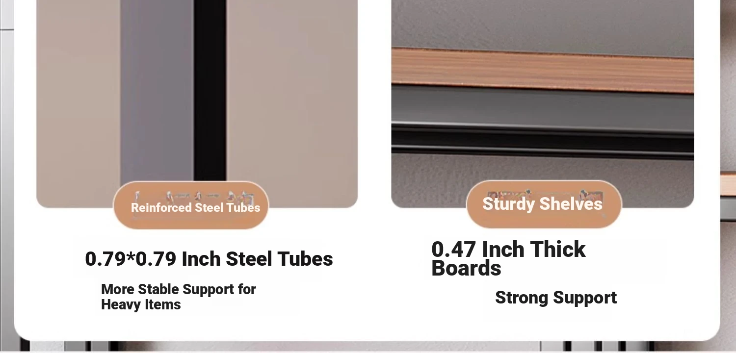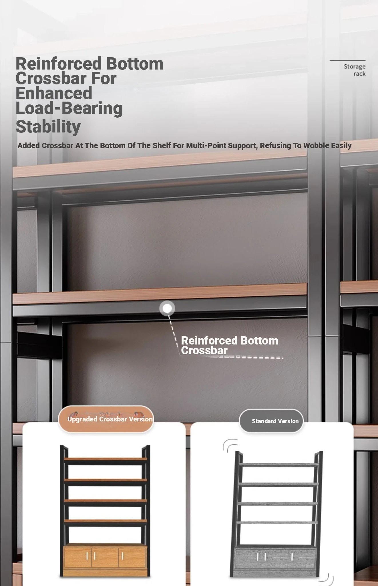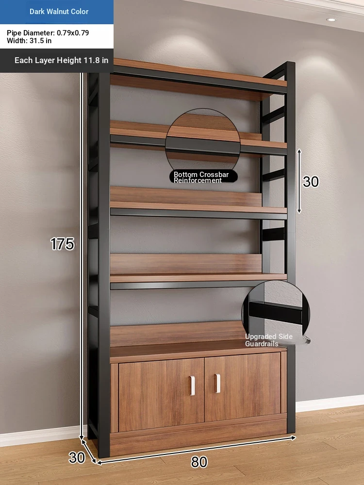 【35-40 Floor Height, Double Bottom Crossbar】Dark Walnut + Black Frame Four-Tier Shelf 47.24in([Upgraded Cabinet Door with Lock])