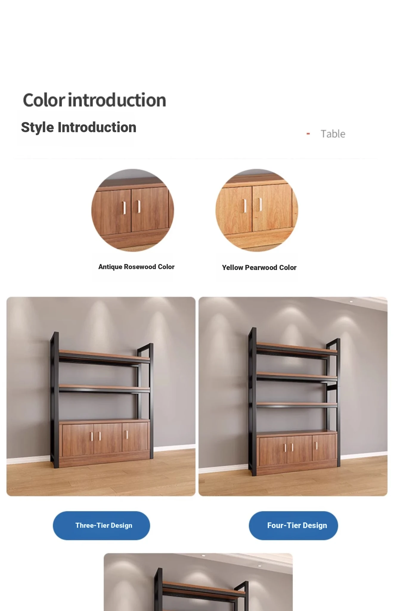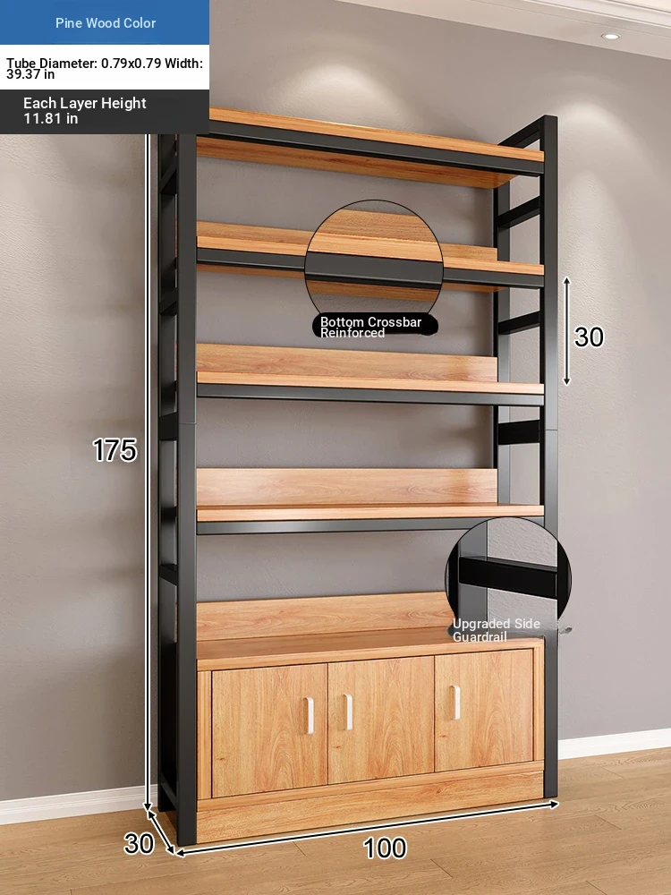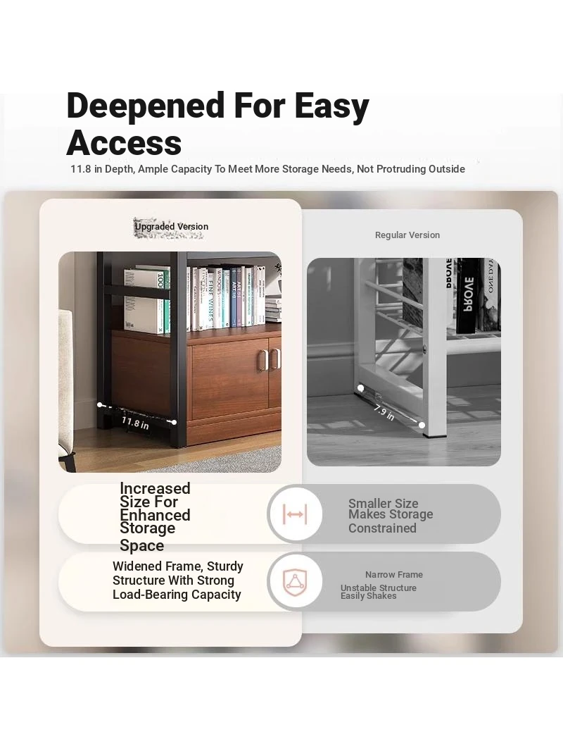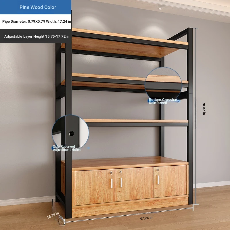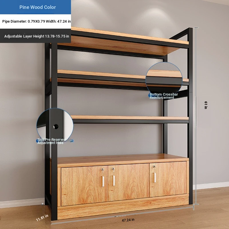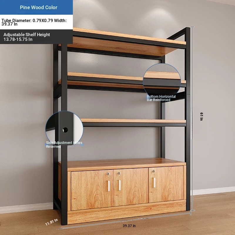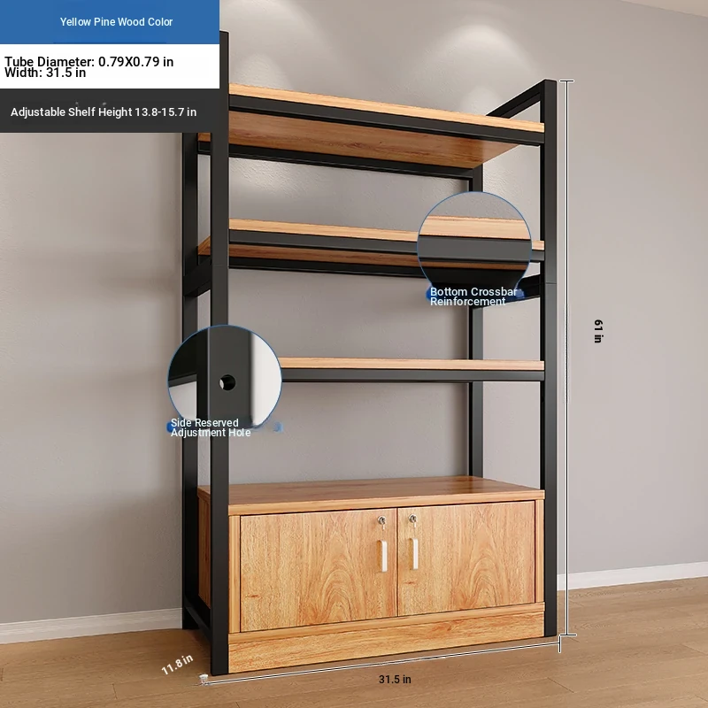【35-40Cm Height, Double Bottom Crossbars】Pear Wood + Black Frame Four-Tier Shelf 23.62in([Upgraded Cabinet Door with Lock])