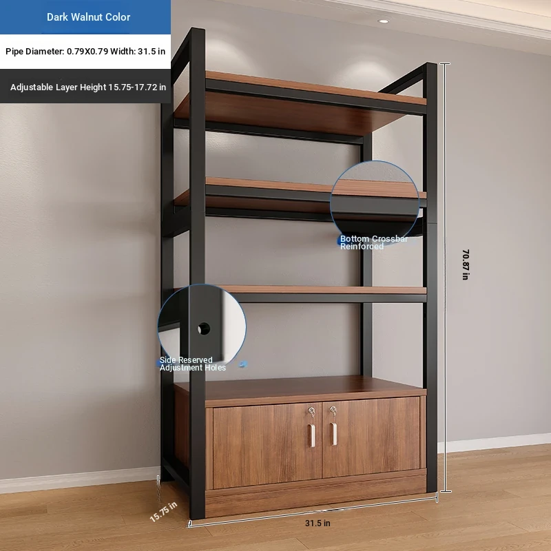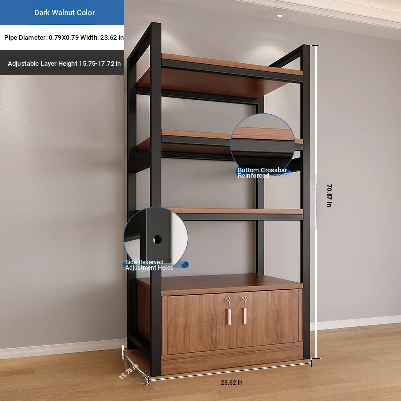 【35-40Cm Height, Double Bottom Crossbar】Dark Walnut + Black Frame Four-Tier Shelf 23.62in([Upgraded Cabinet Door with Lock])