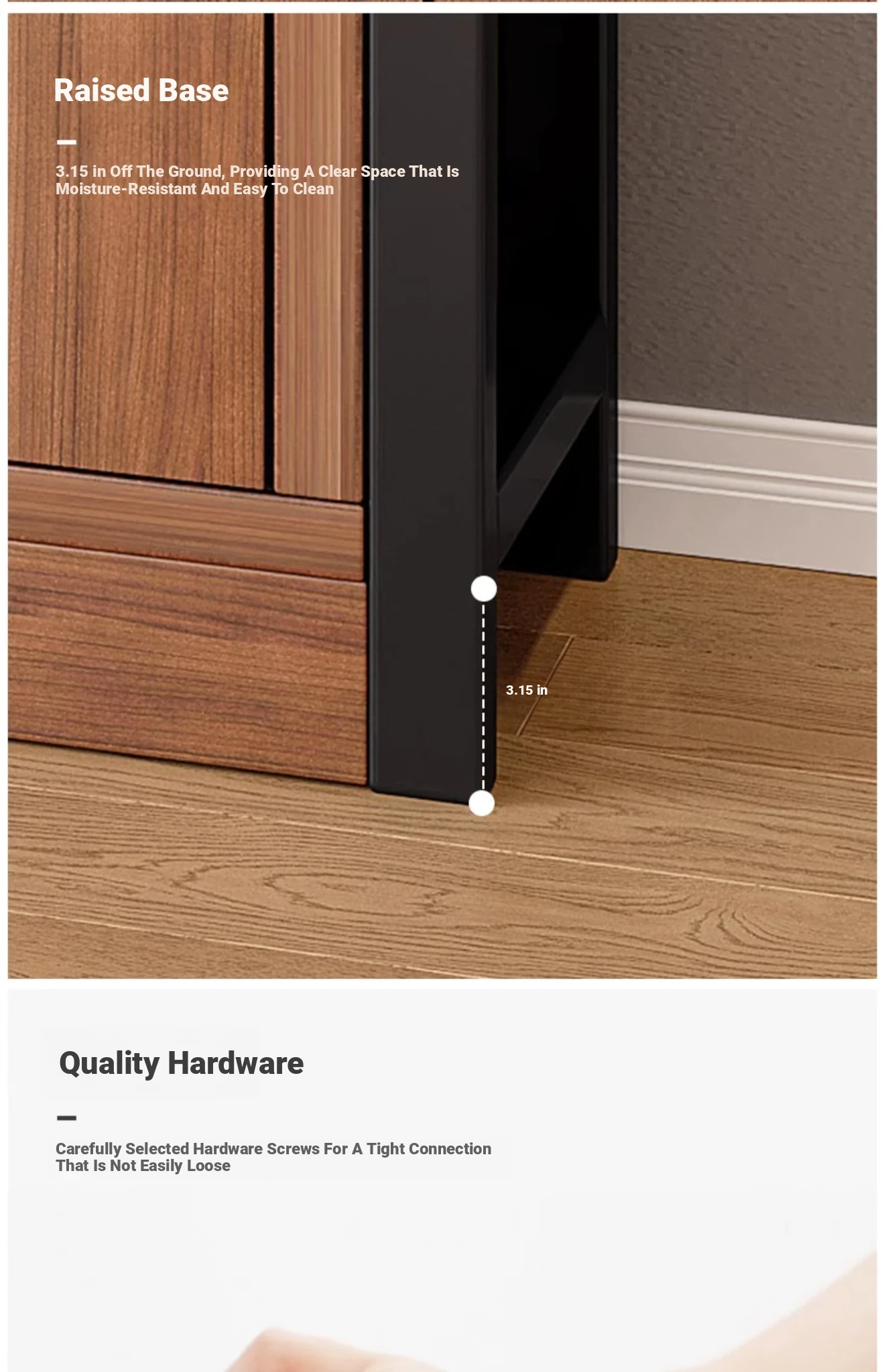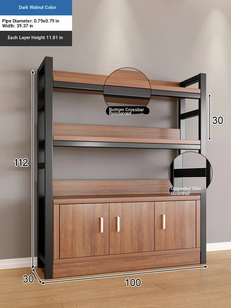 【35-40 Floor Height, Double Bottom Crossbar】Dark Walnut + Black Frame Three-Tier Shelf 31.50in([Upgraded Cabinet Door with Lock])