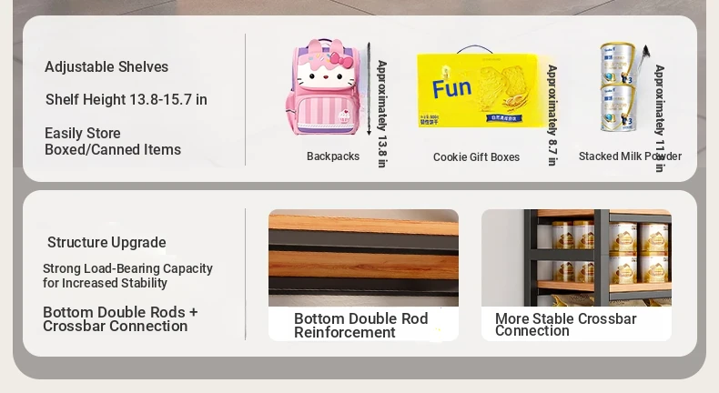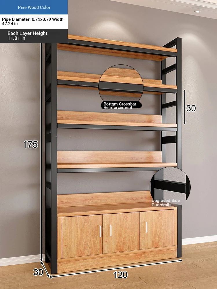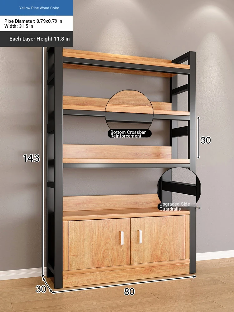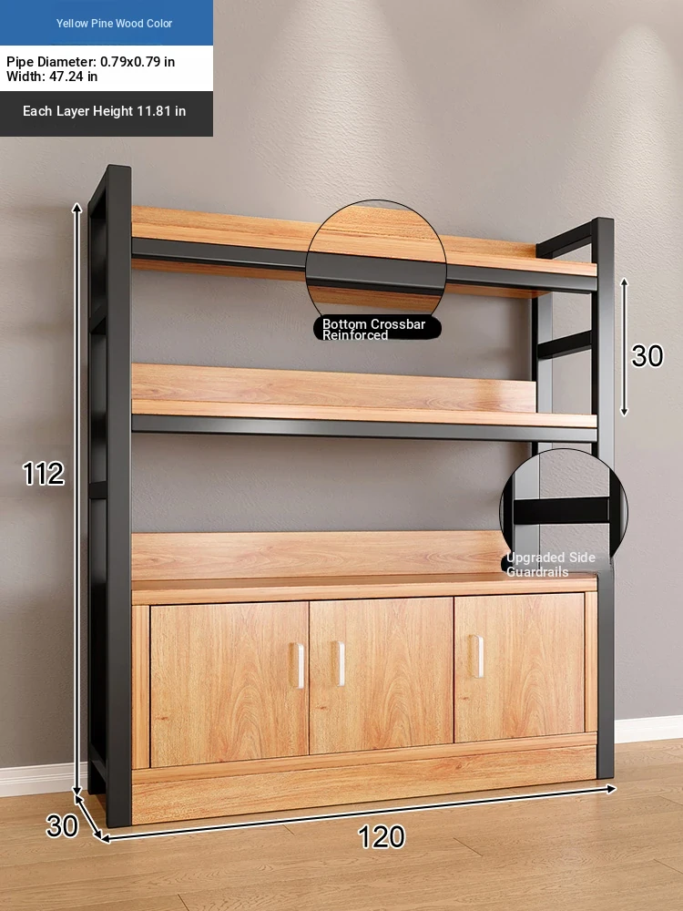 【35-40Cm Height, Double Bottom Crossbar】Pear Wood + Black Frame Four-Tier Shelf 47.24in([Upgraded Cabinet Door with Lock])
