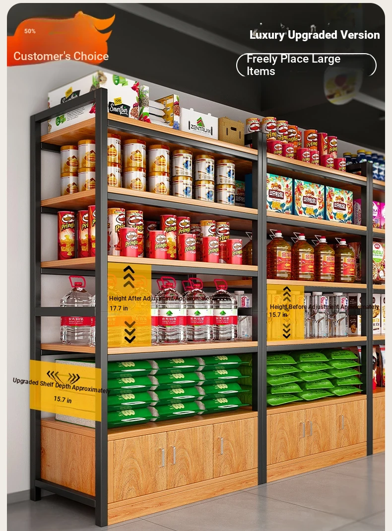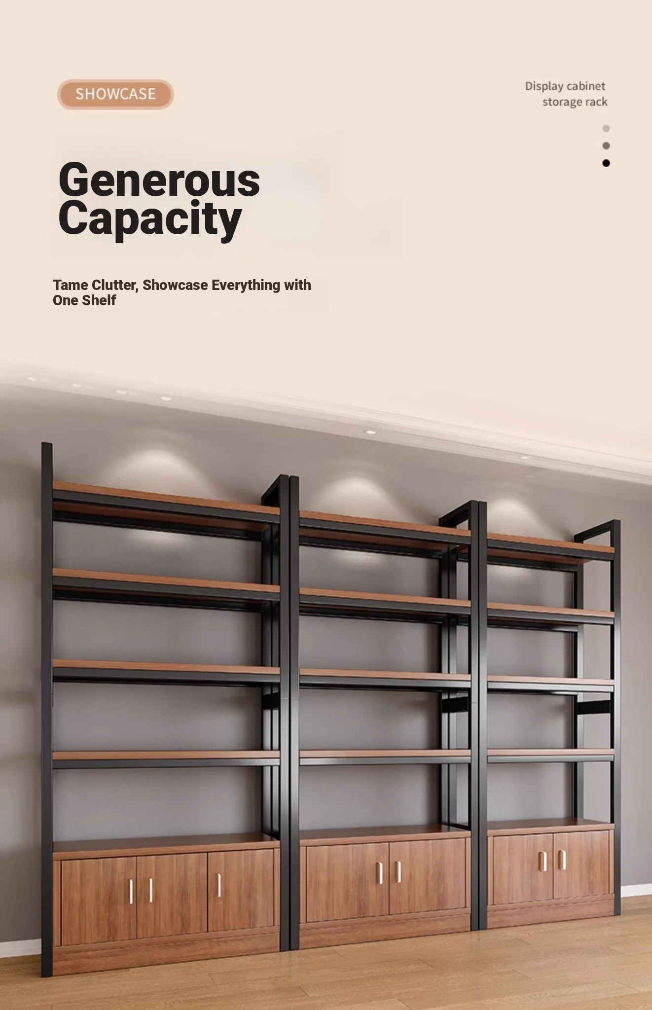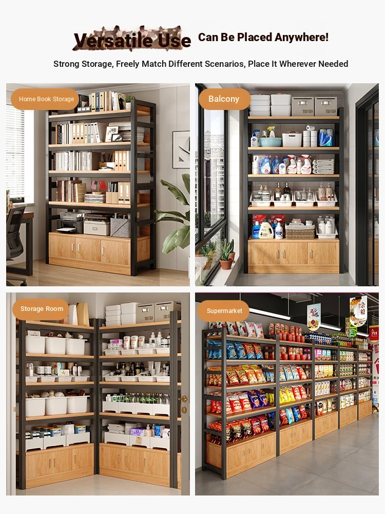 【40-45Cm Height, Extra Deep & Tall】Pear Wood Finish + Black Frame Four-Tier Shelf 60X40X180([Upgraded Cabinet Door with Lock])
