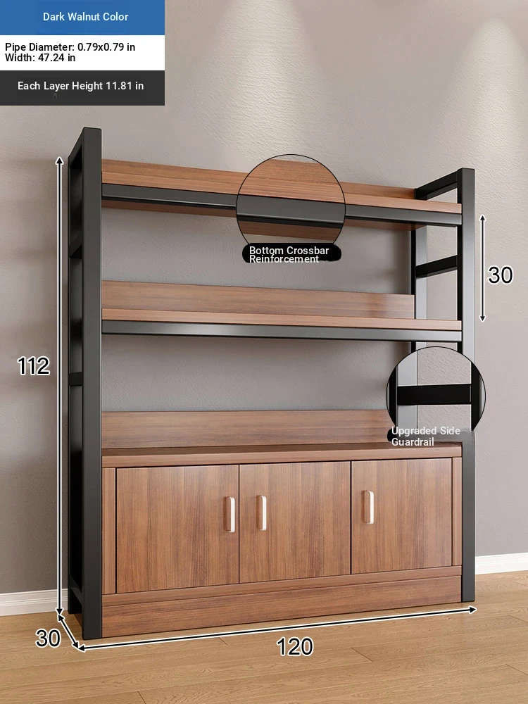 【35-40 Floor Height, Double Bottom Crossbars】Dark Walnut + Black Frame Three-Tier Shelf 47.24in([Upgraded Cabinet Door with Lock])