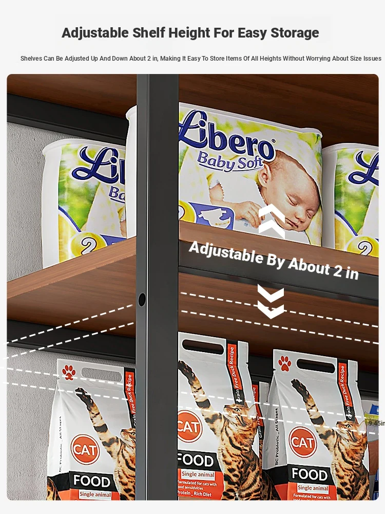 【30-Tier Upgraded Side Rail Shelving Unit】 Pear Wood Finish + Black Frame, Five-Tier, 39.37in