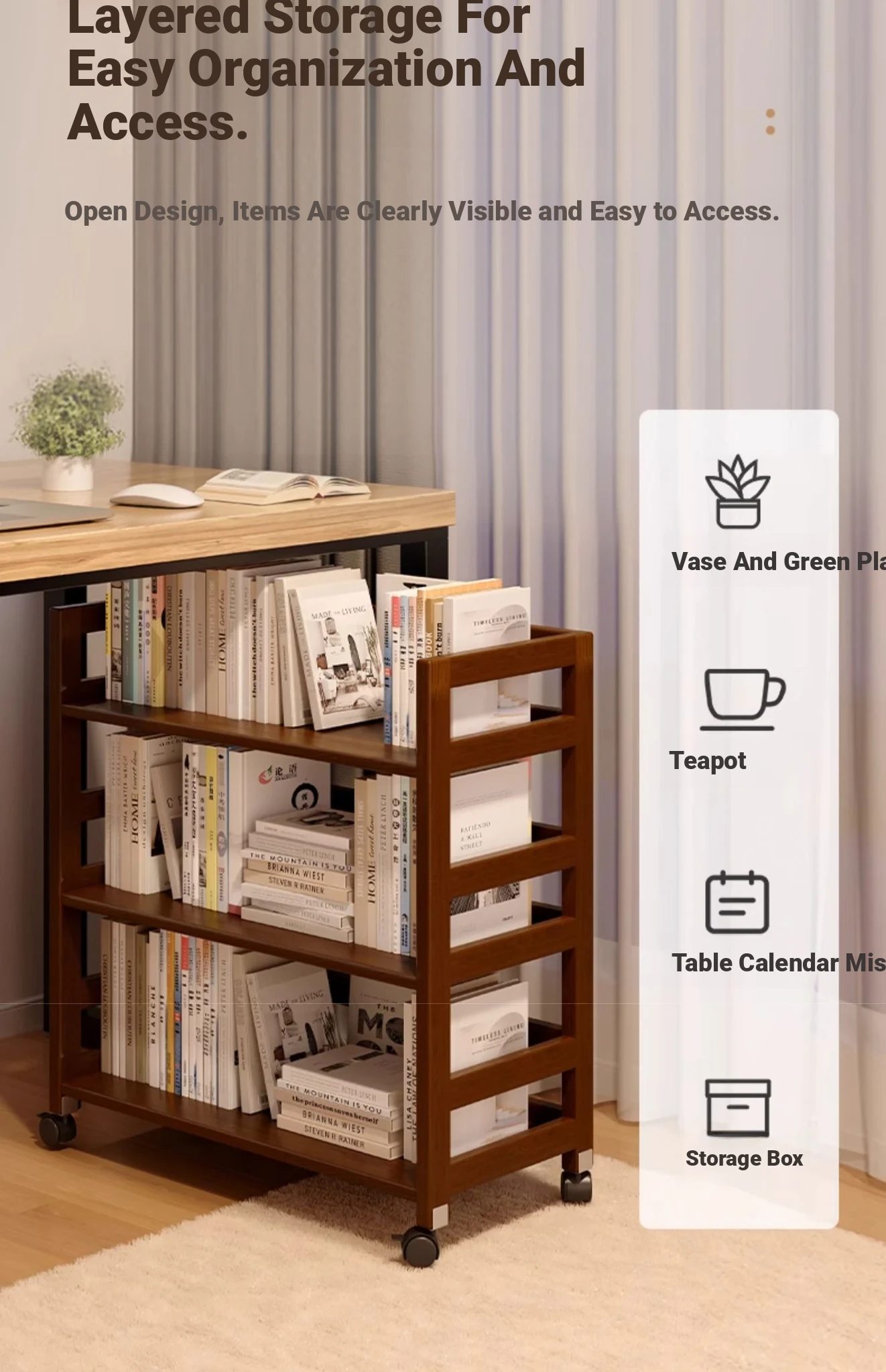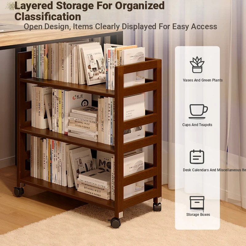 Multi-Layer Rolling Bookshelf - Versatile Under-Desk Storage Cart for Home and Dorm Use, Perfect for Organizing Your Books and Essentials!