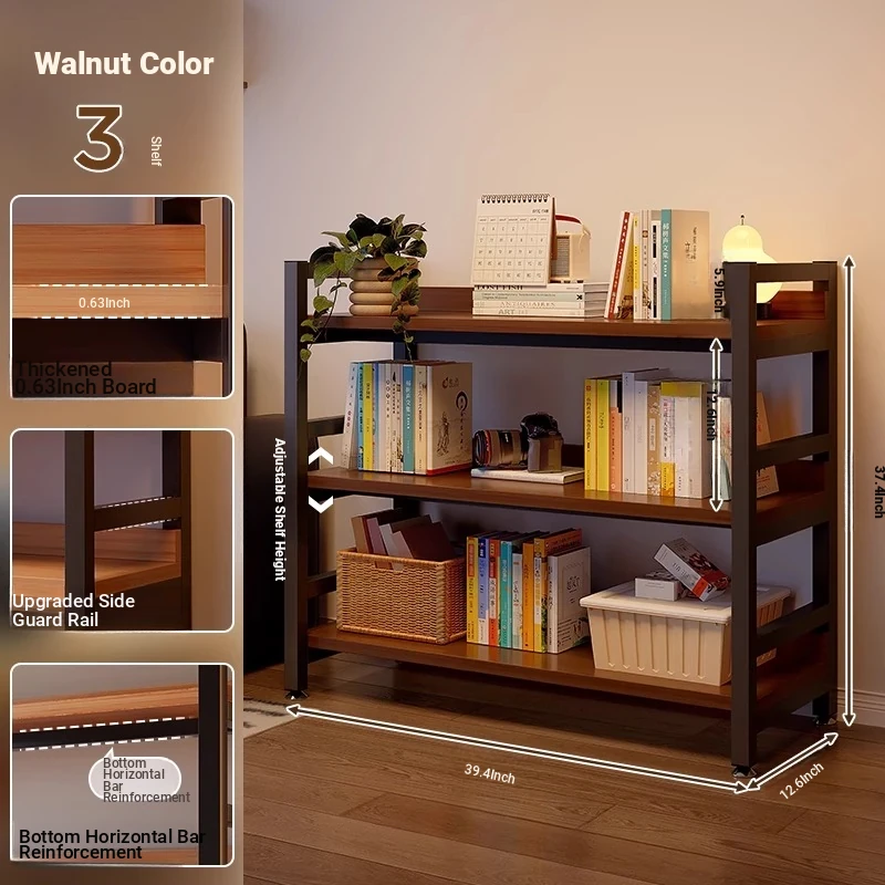 【Door-To-Door Delivery】Walnut Finish Three-Tier Shelving Unit 【Dimensions: Length 39.37in * Width 12.60in * Height 95Cm】Reinforced 0.79in Tubing, Adjustable Shelf Height