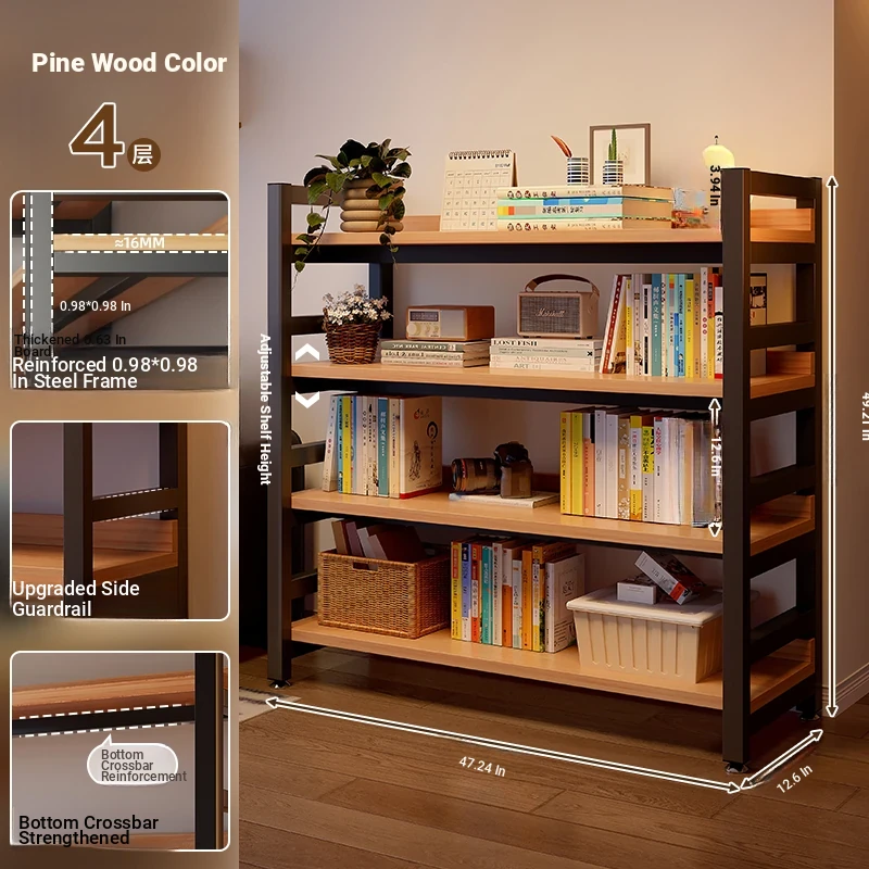 【Door-To-Door Delivery】Yellow Pear Wood Color Four-Tier [Length 120*Width 32*Height 125] Reinforced 0.79in Tubing, Adjustable Shelf Height