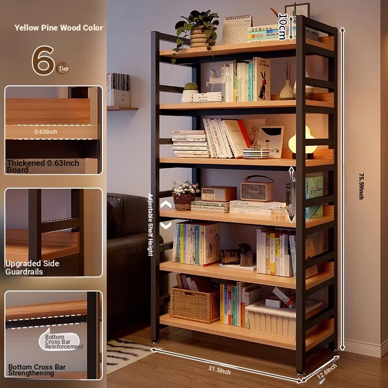 【Door-To-Door Delivery】Yellow Pear Wood Color Six-Tier [Length 100*Width 32*Height 192] Reinforced 0.79in Tubing, Adjustable Shelf Height