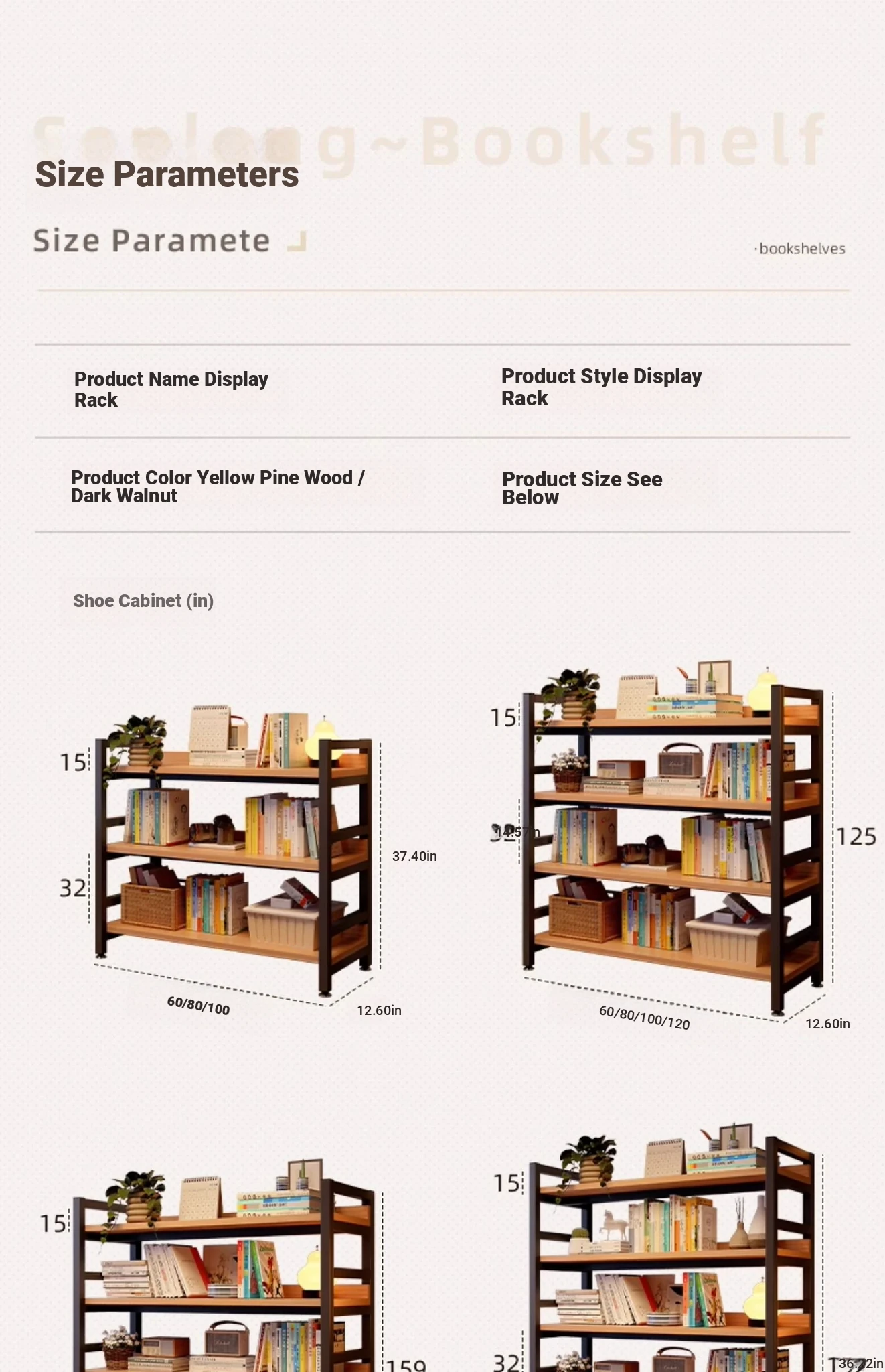 【Door-To-Door Delivery】Yellow Pear Wood Color Four-Tier [Length 100*Width 32*Height 125] Reinforced 0.79in Tubing, Adjustable Shelf Height