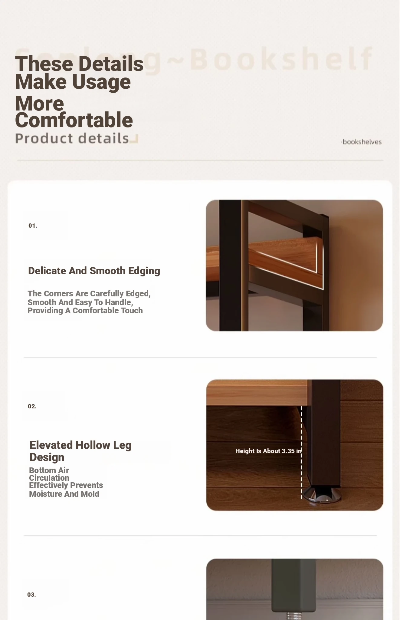 【Door-To-Door Delivery】Yellow Pear Wood Color Three-Tier [Length 60*Width 32*Height 95] Reinforced 0.79in Tubing, Adjustable Shelf Height