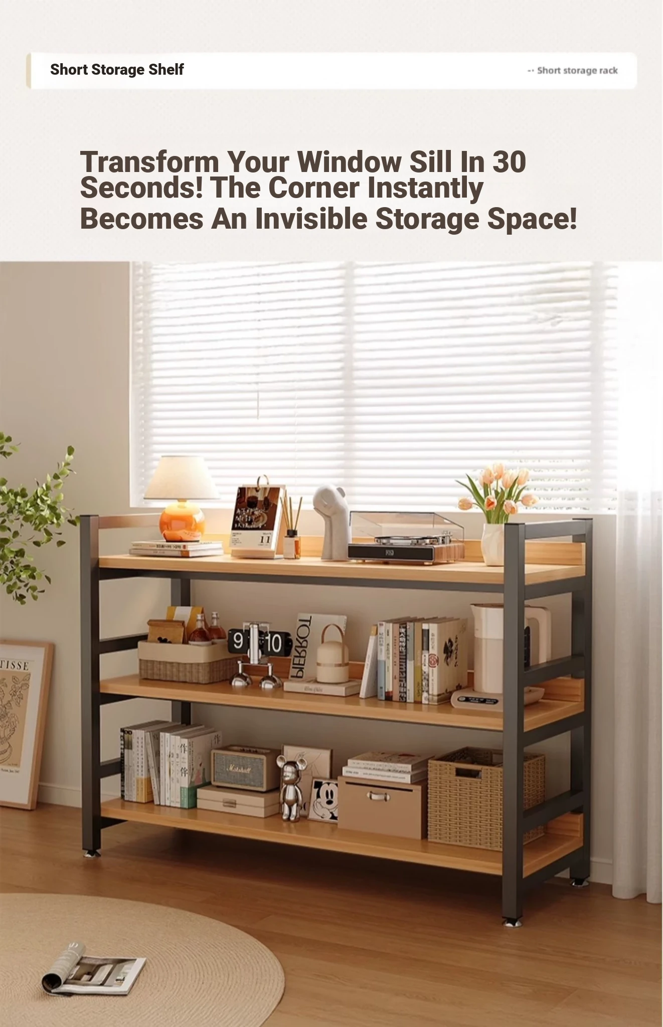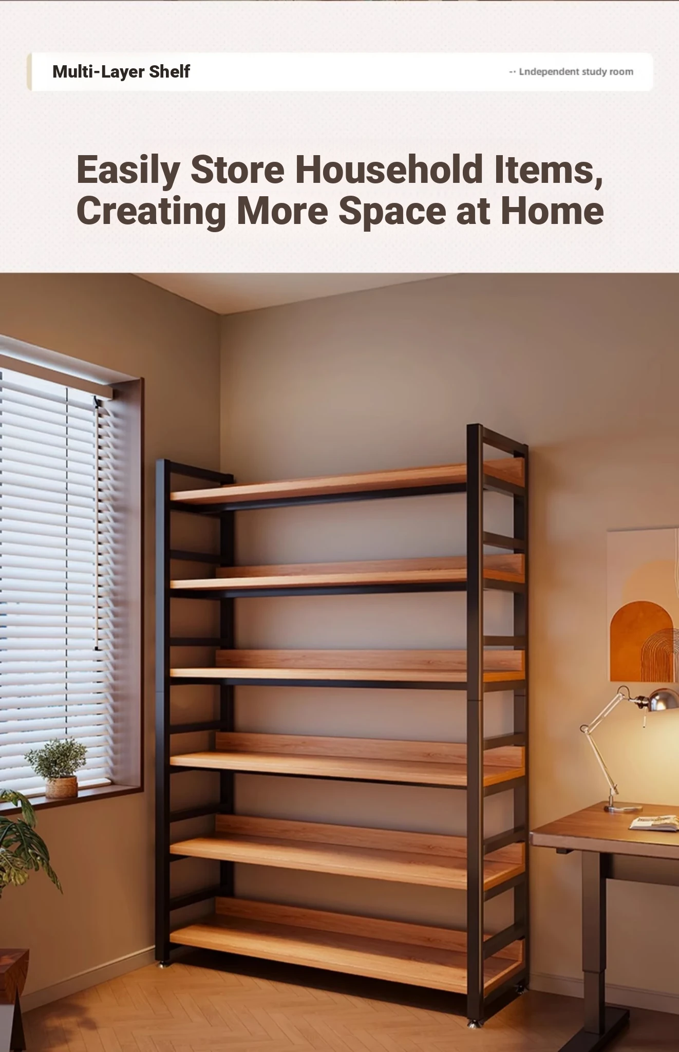 Multi-Layer Storage Rack for Living Room - Versatile Floor Shelf with Wall-Mounted Design, Perfect for Display and Partitioning, Steel-Wood Storage Cabinet and Bookshelf. Ideal for Organizing Your Space!