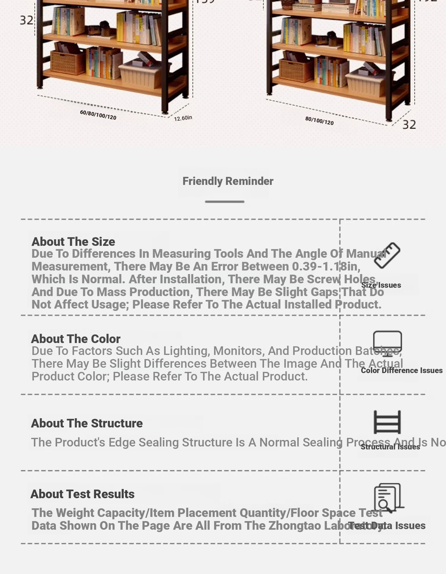 【Door-To-Door Delivery】Walnut Finish Four-Tier Shelving Unit [L100*W32*H125] with Reinforced 0.79in Tubing and Adjustable Shelf Height