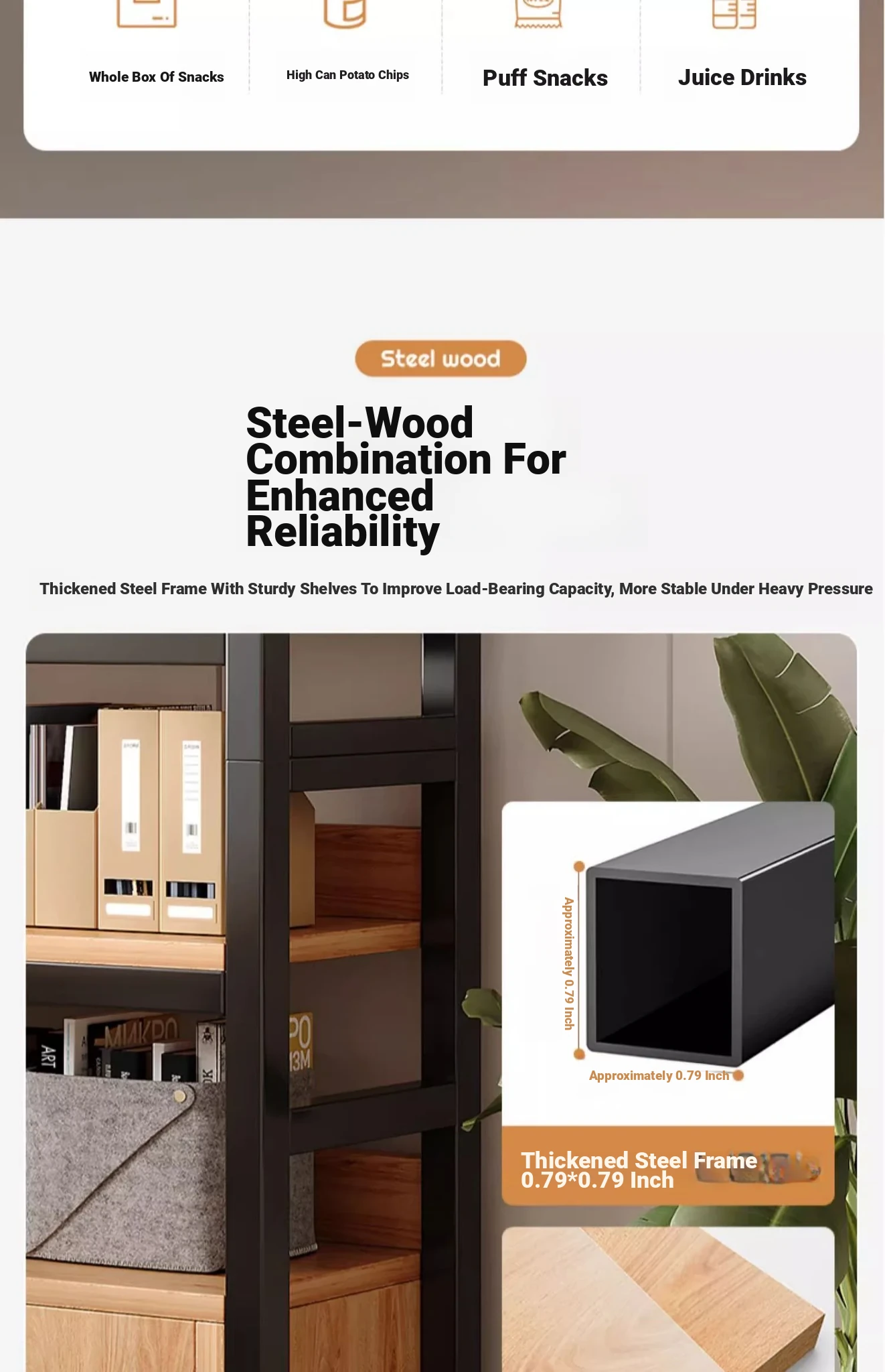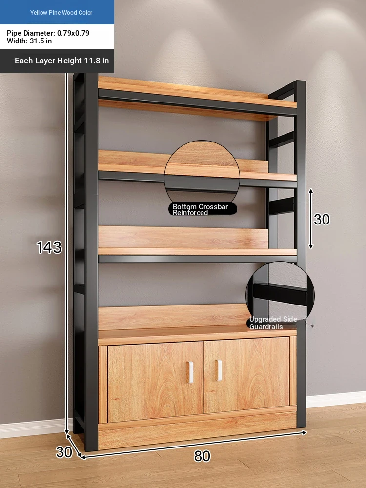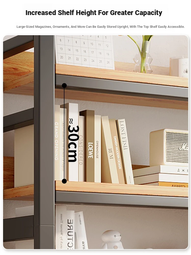 【35-40Cm Height, Double Bottom Crossbar】Pear Wood + Black Frame Five-Tier Shelf 31.50in