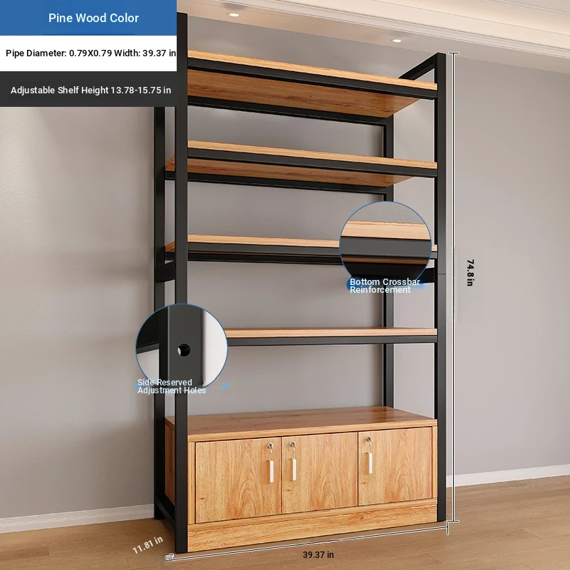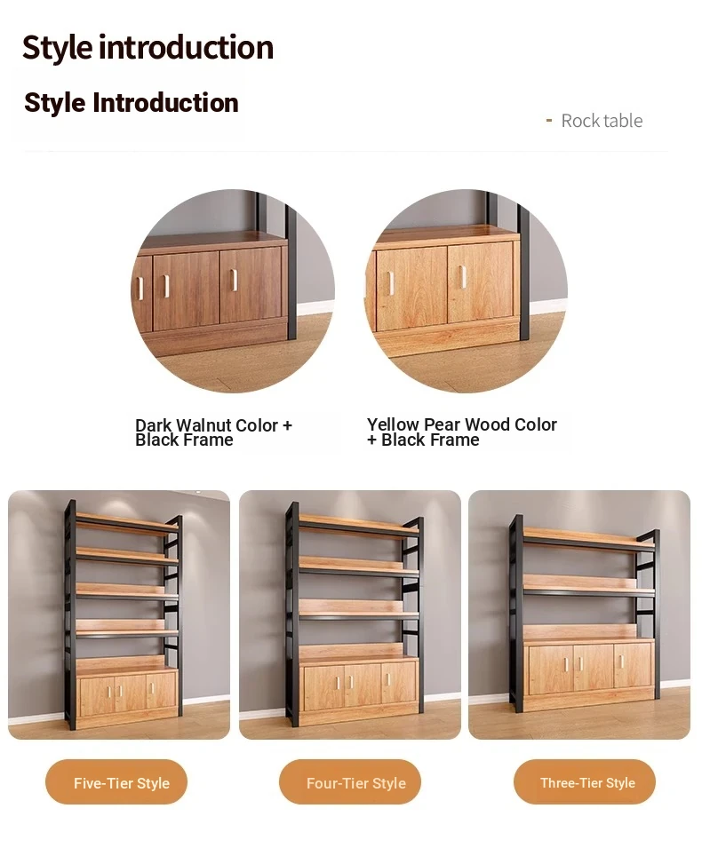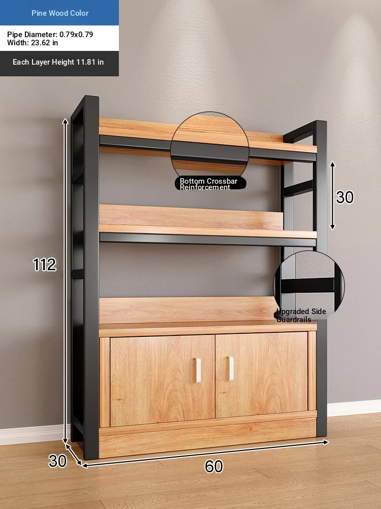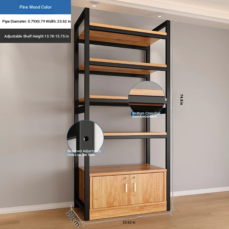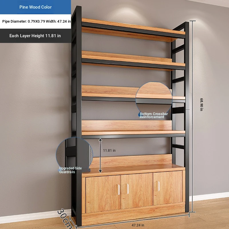【35-40Cm Height, Double Bottom Crossbar】Pear Wood + Black Frame Five-Tier Shelf 23.62in