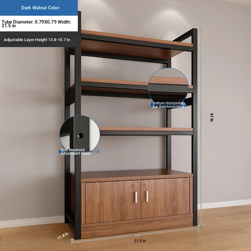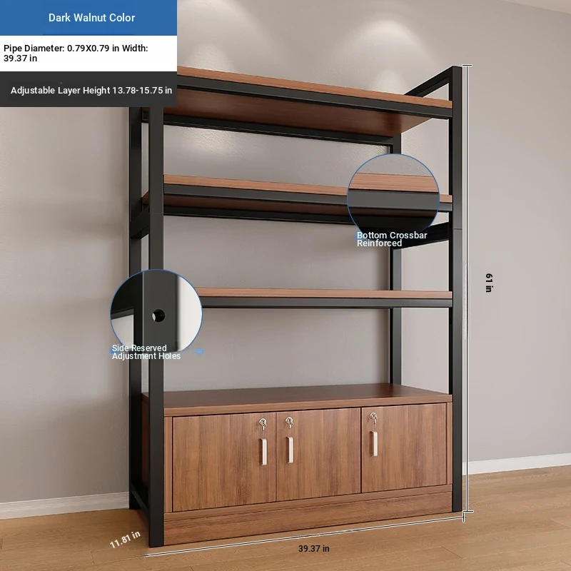 【35-40 Floor Height, Double Bottom Crossbar】Dark Walnut + Black Frame Four-Tier Shelf 47.24in