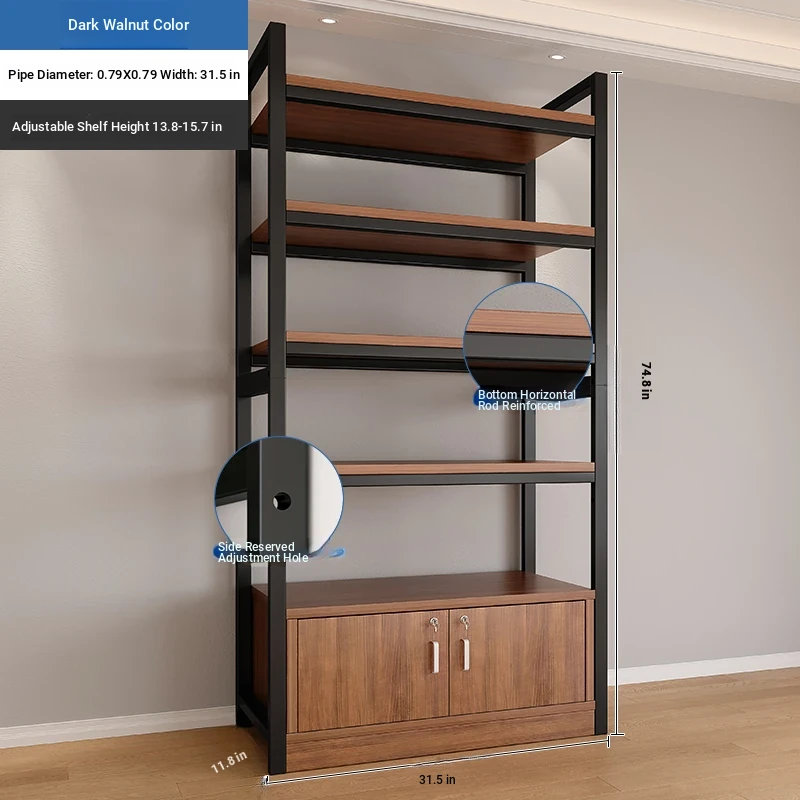 【35-40Cm Height, Double Bottom Crossbar】Dark Walnut + Black Frame Five-Tier Shelf 31.50in