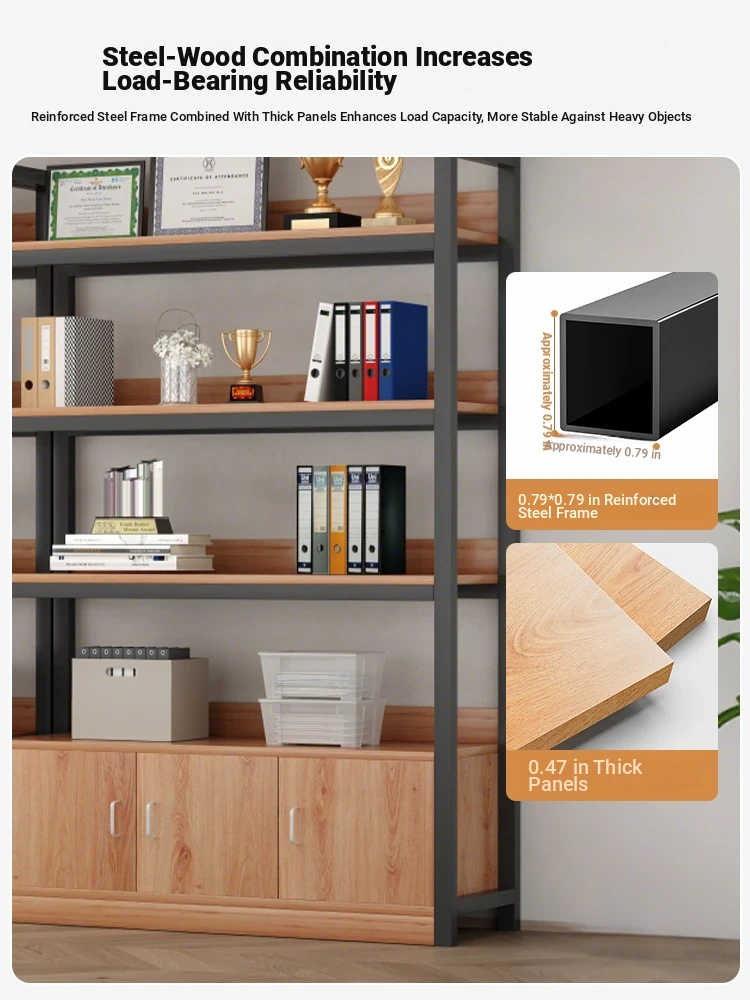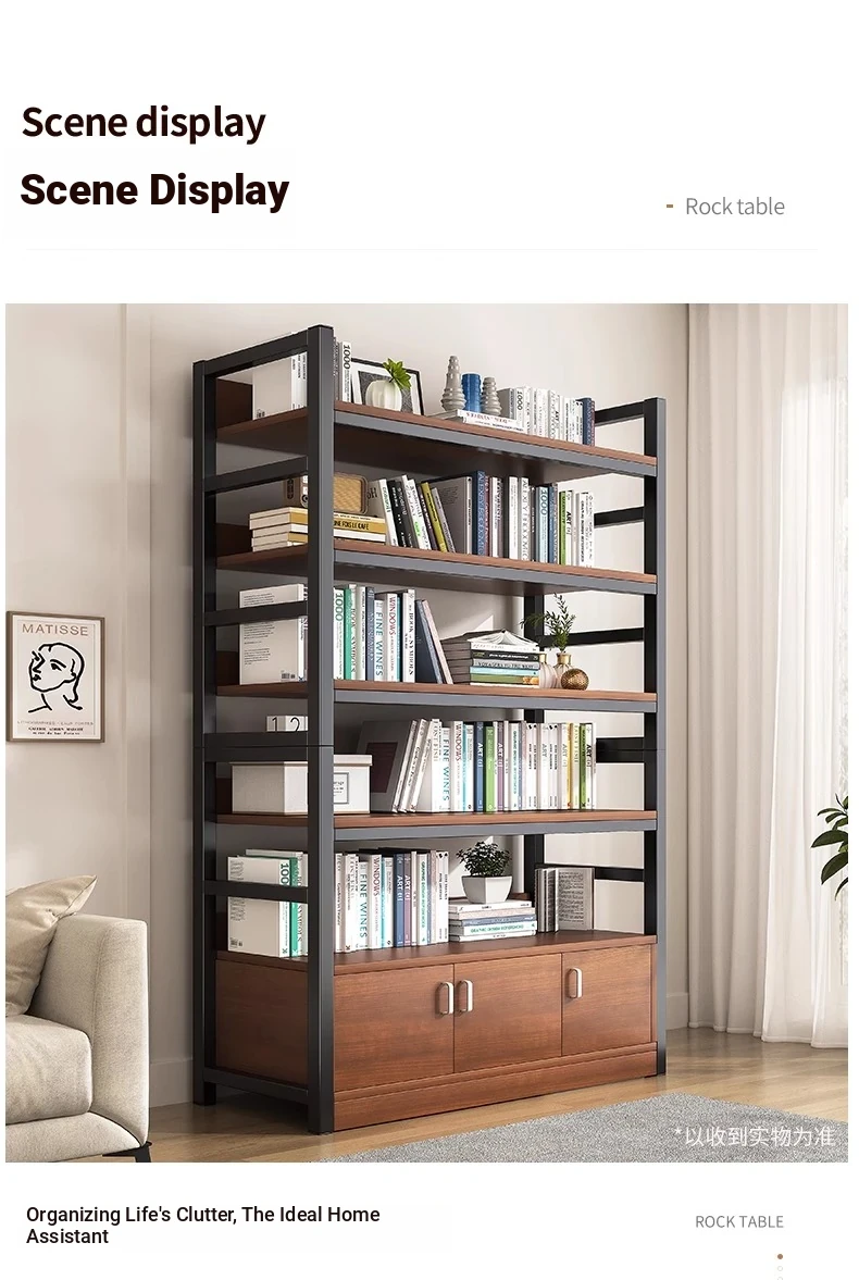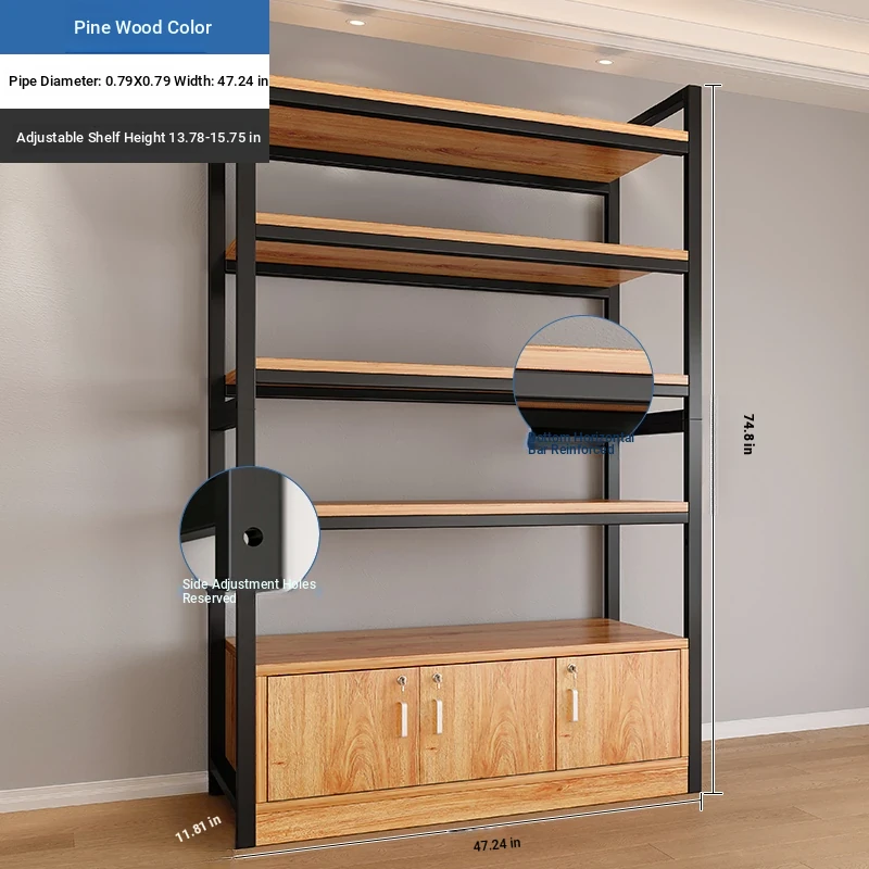 【35-40 Floor Height, Double Bottom Crossbars】Pear Wood + Black Frame Five-Tier Shelf 47.24in