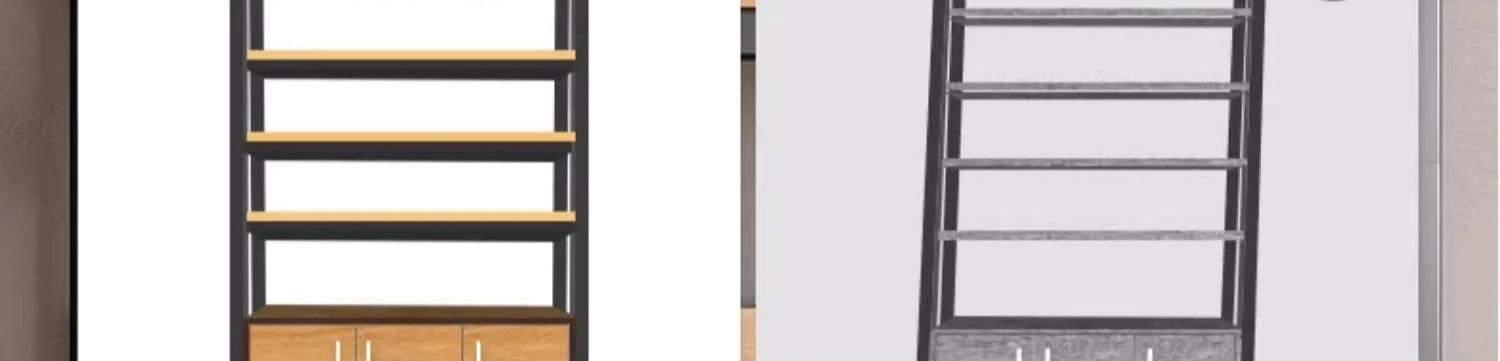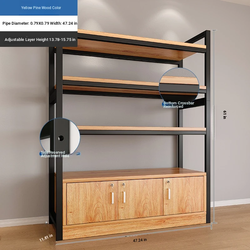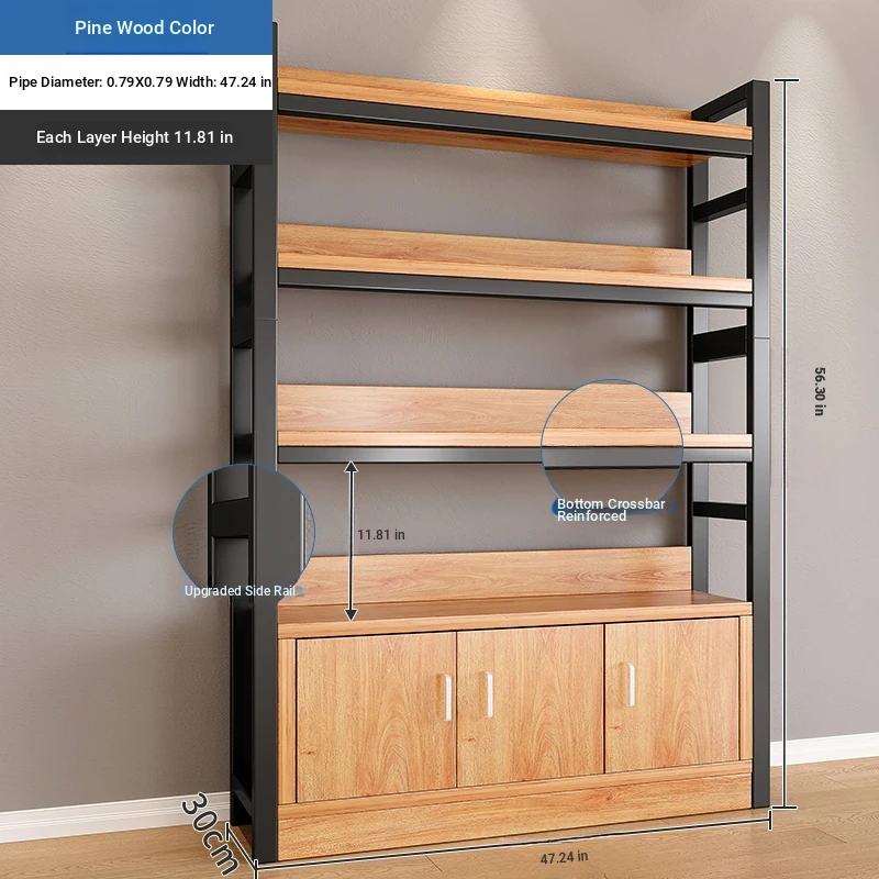 【35-40Cm Height, Double Bottom Crossbar】Pear Wood + Black Frame Four-Tier Shelf 47.24in