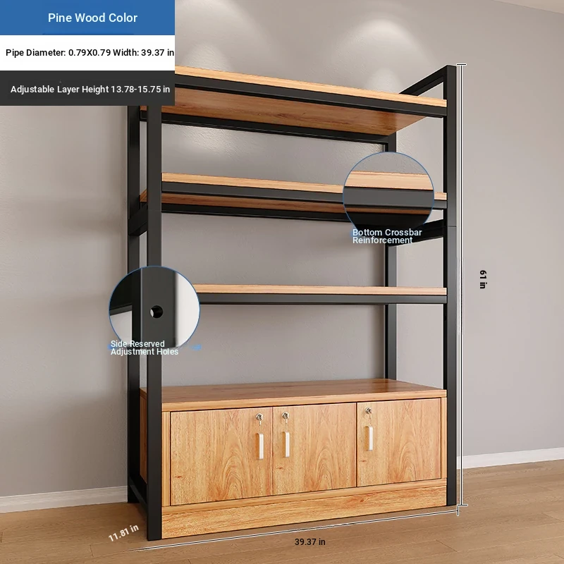 【35-40Cm Height, Double Bottom Crossbar】Pear Wood + Black Frame Four-Tier Shelf 39.37in