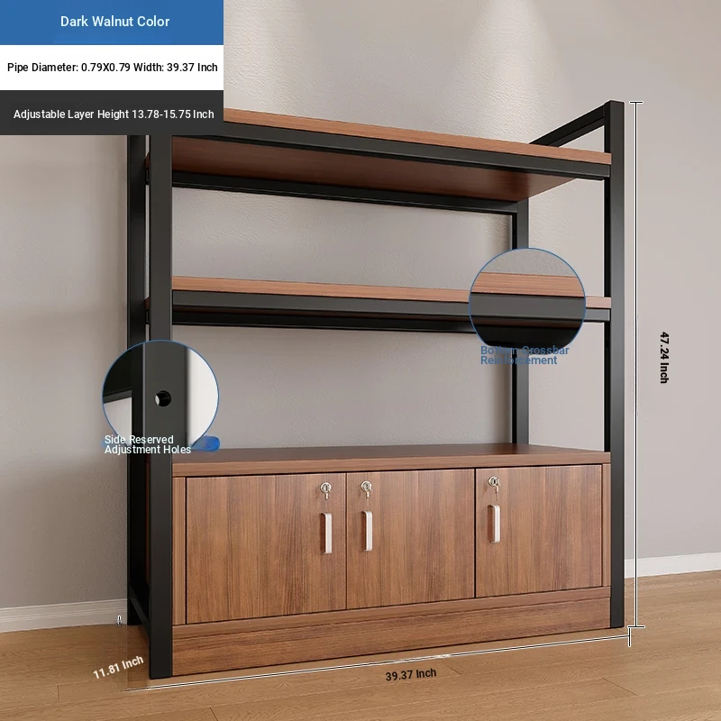 【35-40 Floor Height, Double Bottom Crossbars】Dark Walnut + Black Frame Three-Tier Shelf 39.37in
