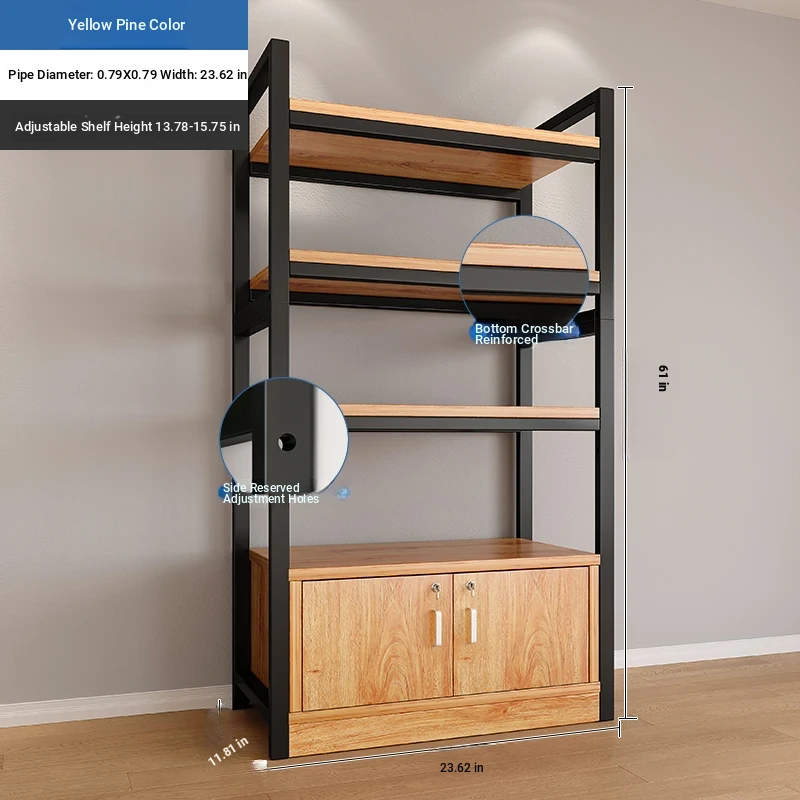 【35-40Cm Height, Double Bottom Crossbars】Pear Wood + Black Frame Four-Tier Shelf 23.62in