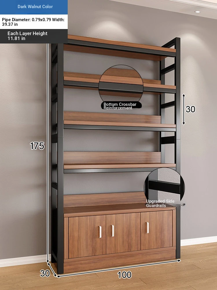 【35-40Cm Height, Double Bottom Crossbars】Dark Walnut + Black Frame Five-Tier Shelf 39.37in