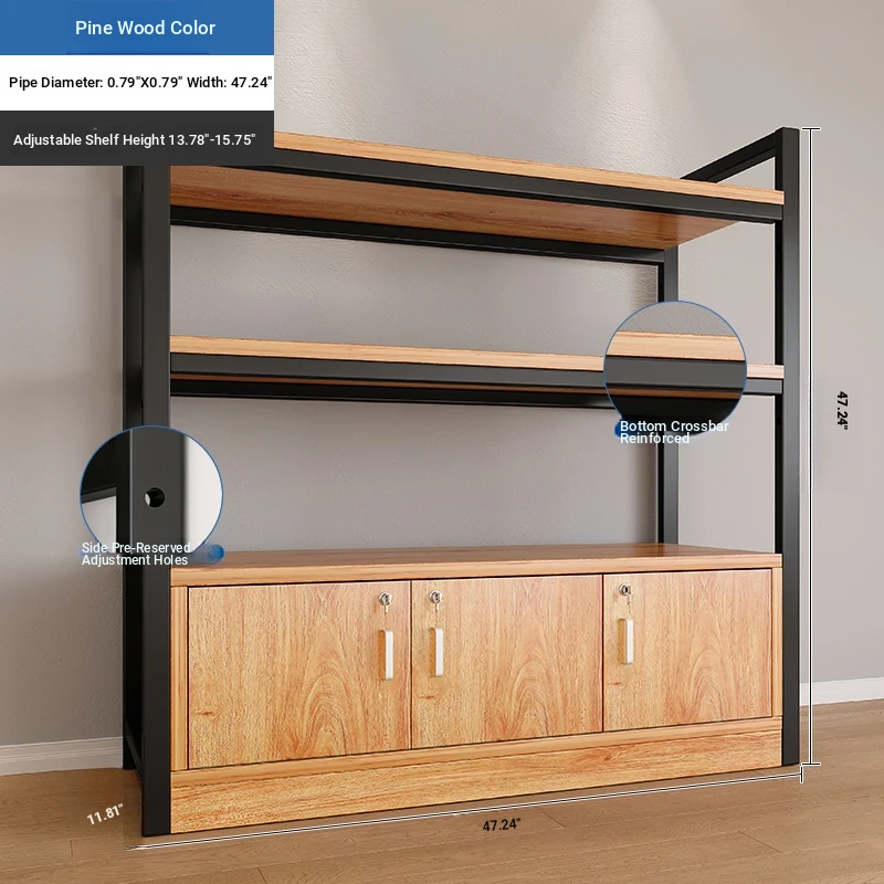 【35-40Cm Height, Double Bottom Crossbar】Pear Wood + Black Frame Three-Tier Shelf 47.24in