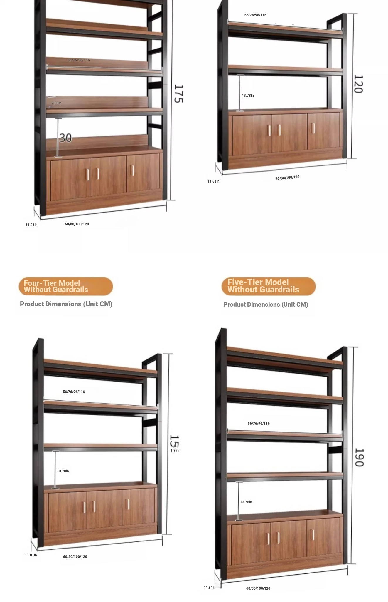 【30-Tier Upgraded Side Rail】Dark Walnut + Black Frame Five-Tier 47.24in