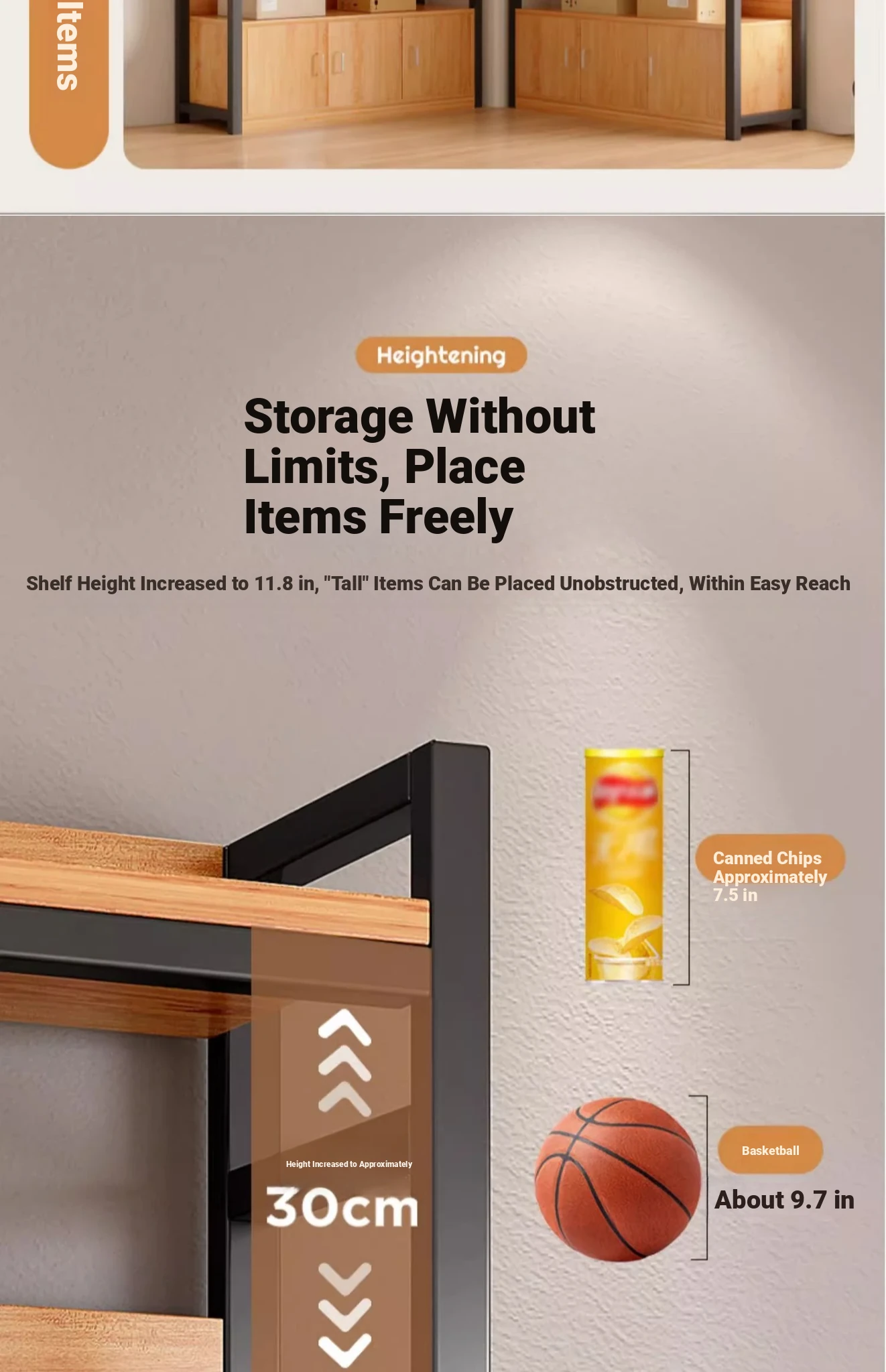 【30-Tier Upgraded Side Rail】Pear Wood + Black Frame Four-Tier 47.24in