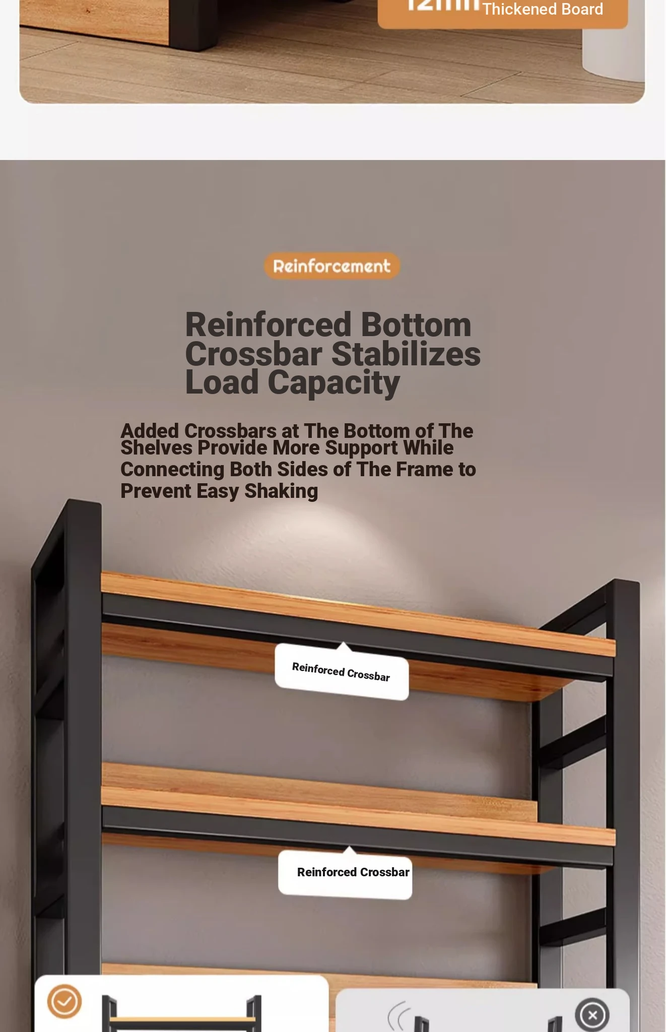【35-40 Floor Height, Double Bottom Crossbars】Baltic Birch + Black Frame Three-Tier Shelf 31.50in