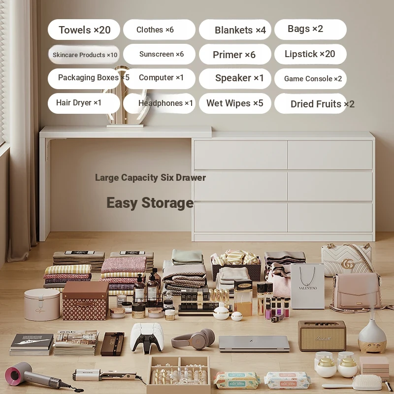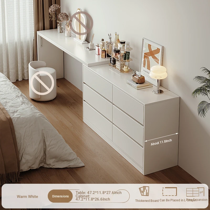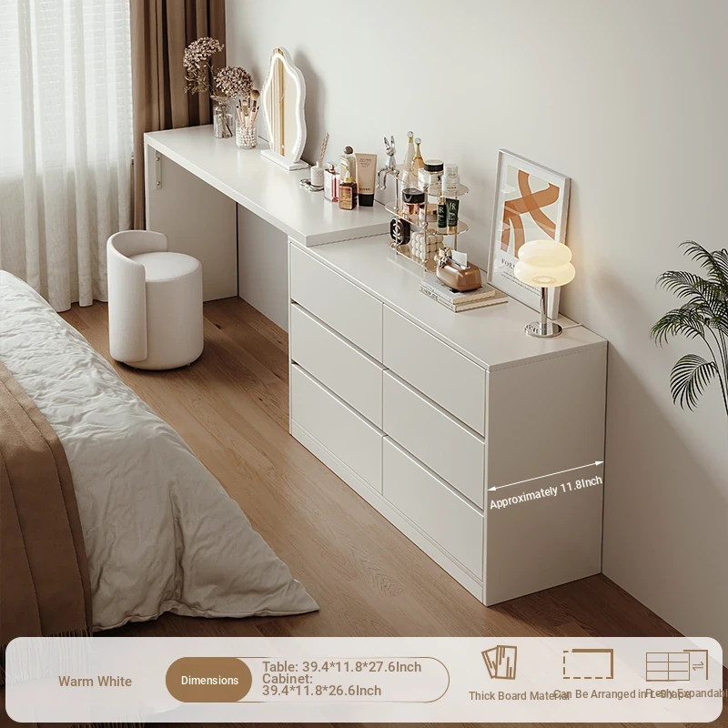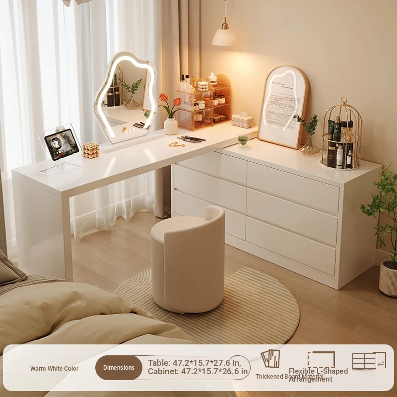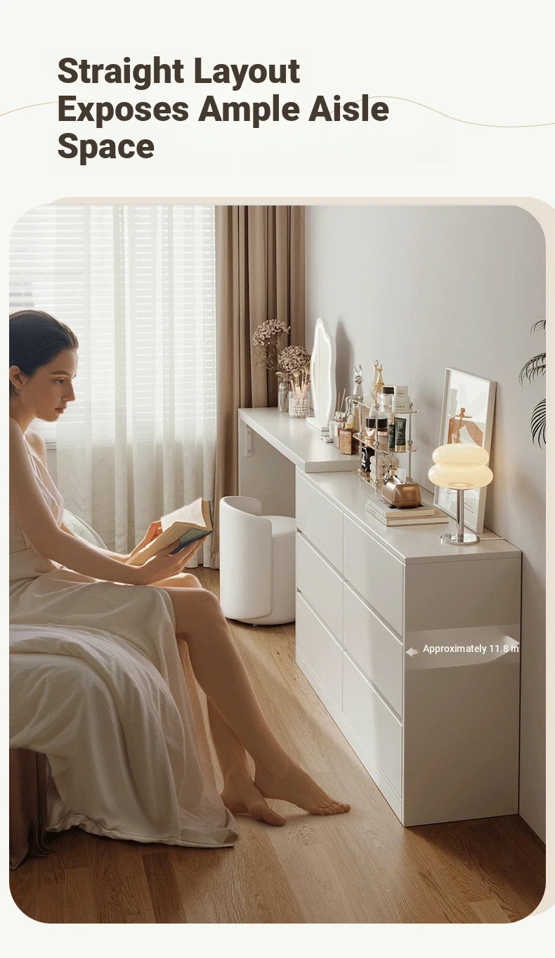 [15.75in Wide] [Cloud Mirror + Back Stool] 47.24in Table + 47.24in Six-Drawer Cabinet